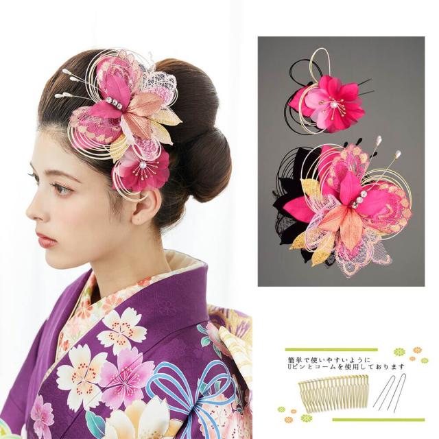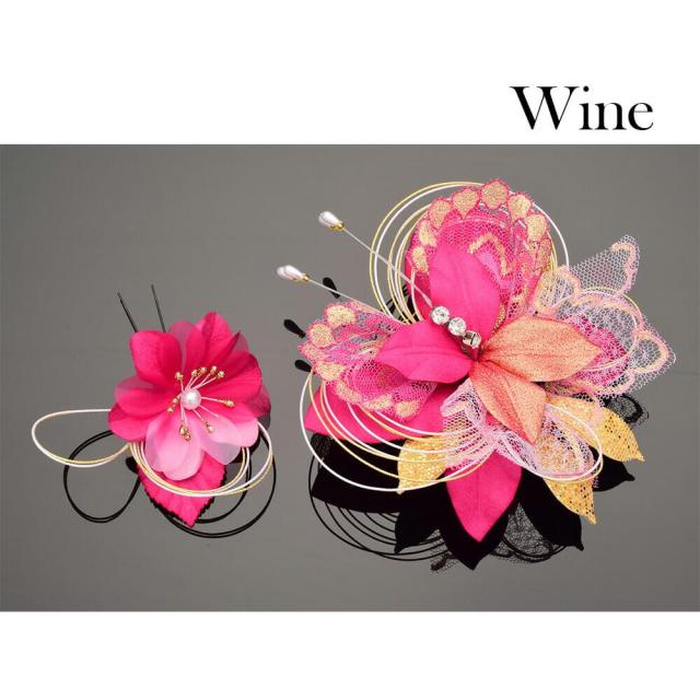 髪飾り 成人式 2点セット レース 水引 花かんざし コーム Uピン 髪留め 卒業式 振袖 前撮り 着物 ワイン 袴 日本製