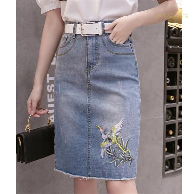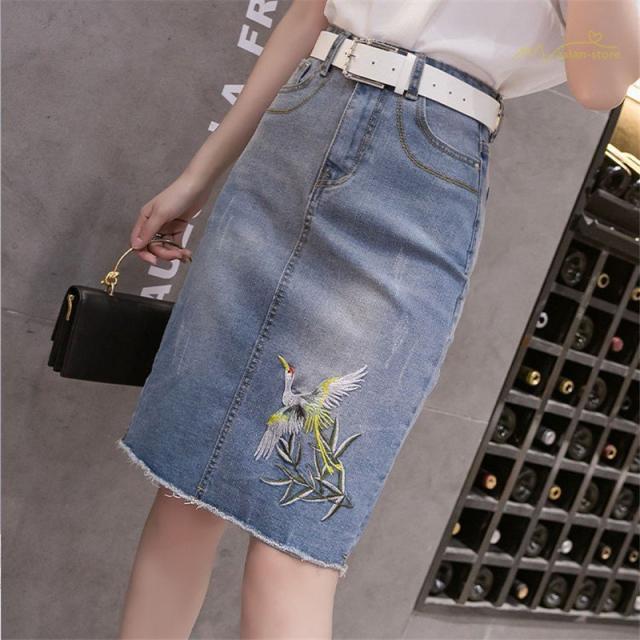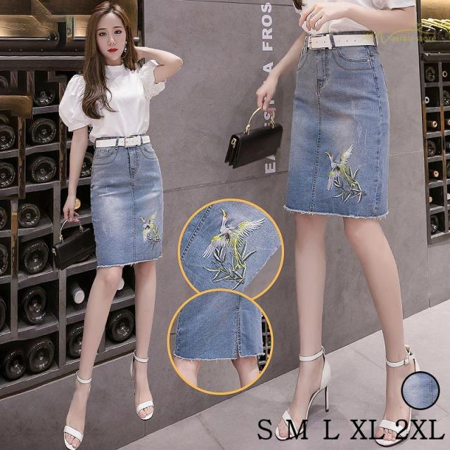 デニムスカート 刺繍レース デイリーコーデ フェミニン ボトムス Aライン 台形スカート ゆったり ハイウエスト スタイリッシュ 細身 上品 スリットスカート