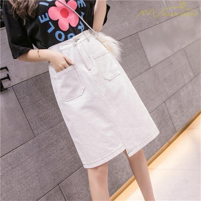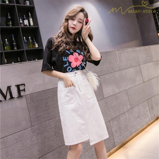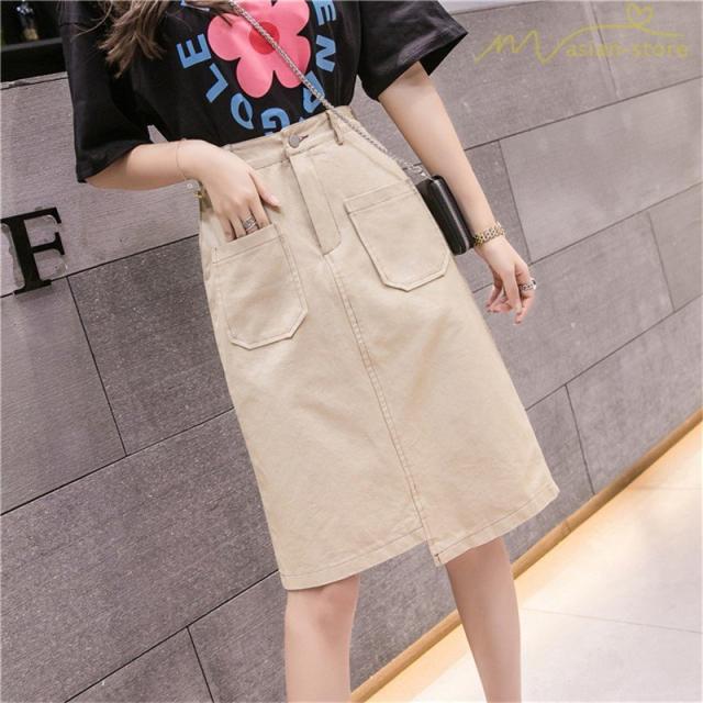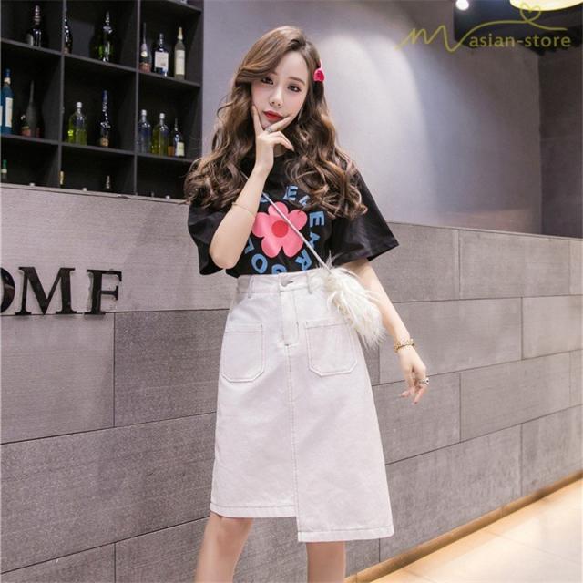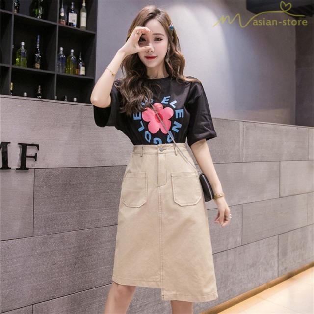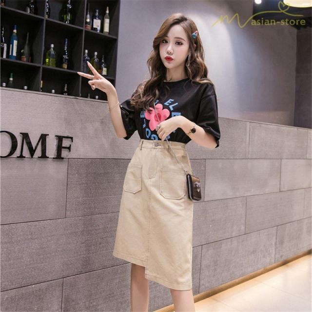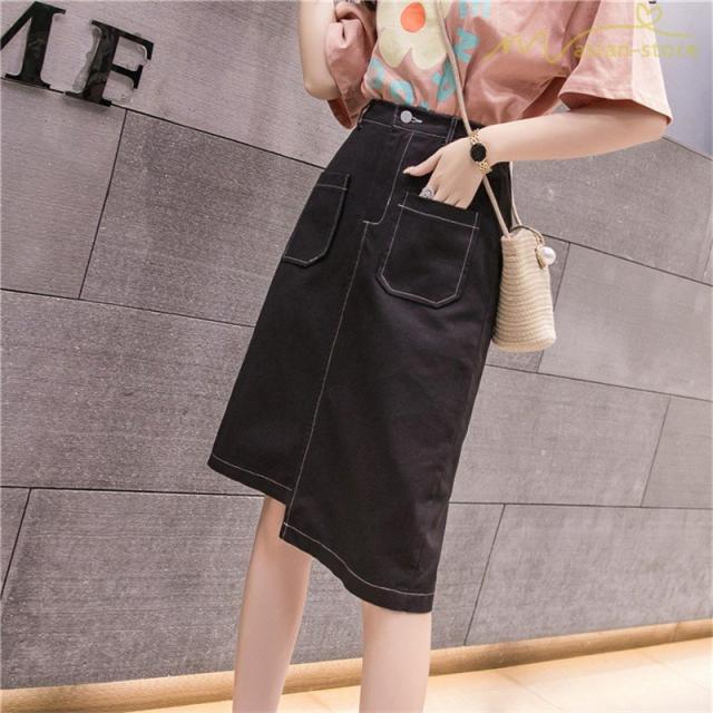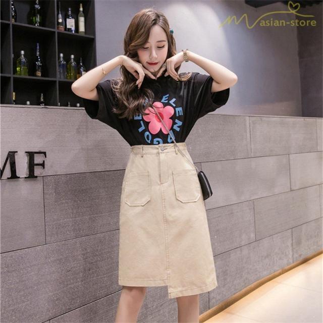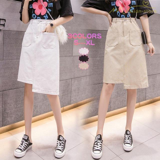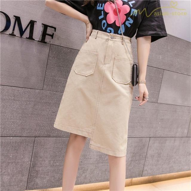 デニムスカート アシンメトリー裾デザイン ハイウエスト 細身効果 Aライン レディース カジュアル デイリーコーデ ミディアムスカート 夏コーデ 2020新制作