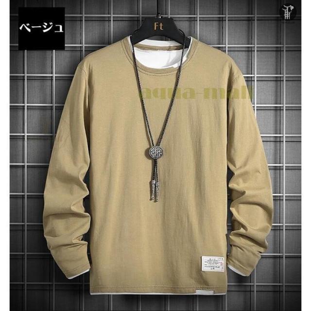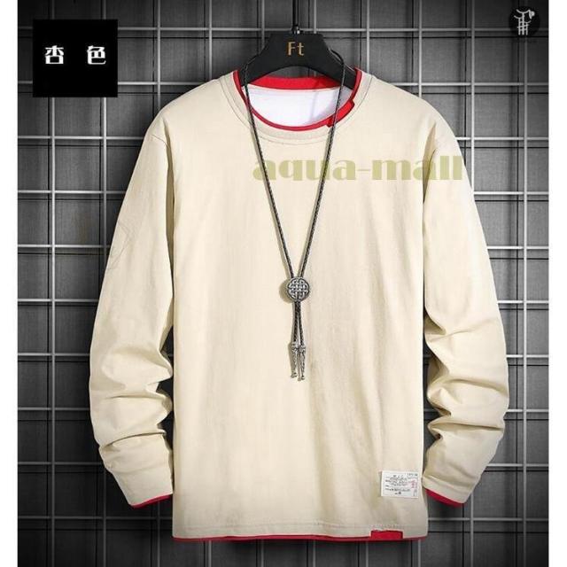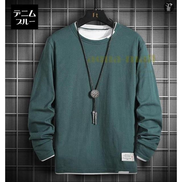 Tシャツ メンズ 重ね着風 切り替え 長袖 丸首 トップス バイカラー 定番 無地 インナー 春 夏 秋