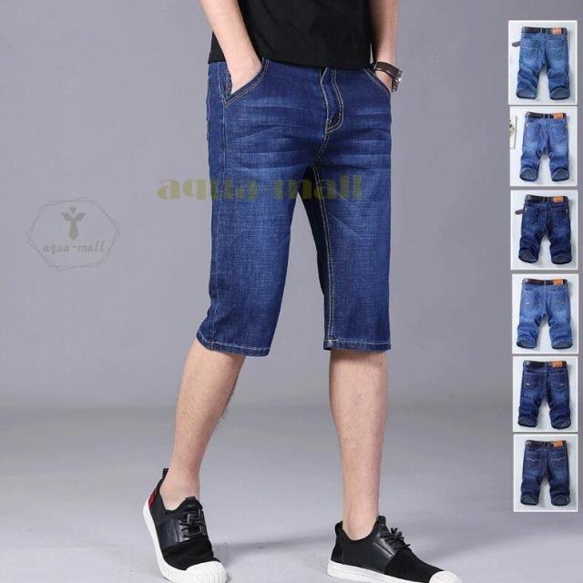 ジーンズ パンツ メンズ デニム クロップドパンツ 五分丈 ボトムス ワイドパンツ ズボン ハーフパンツ イージーパンツ 半パン