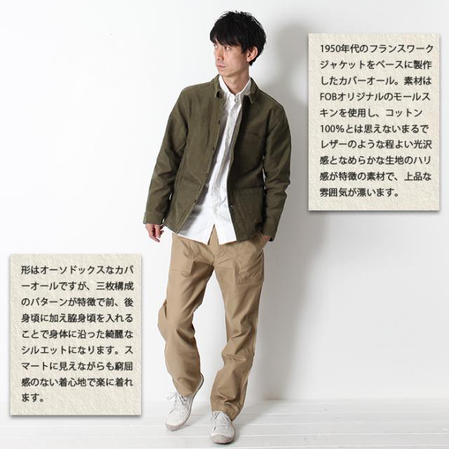 FOB FACTORY エフオービーファクトリー フレンチモールスキン ジャケット [Lot/F2373] アウター 国産 日本製 メイドインジャパン 岡山 児島 きれいめ シンプル きれいめ 大人 紳士 男性 休日スタイル