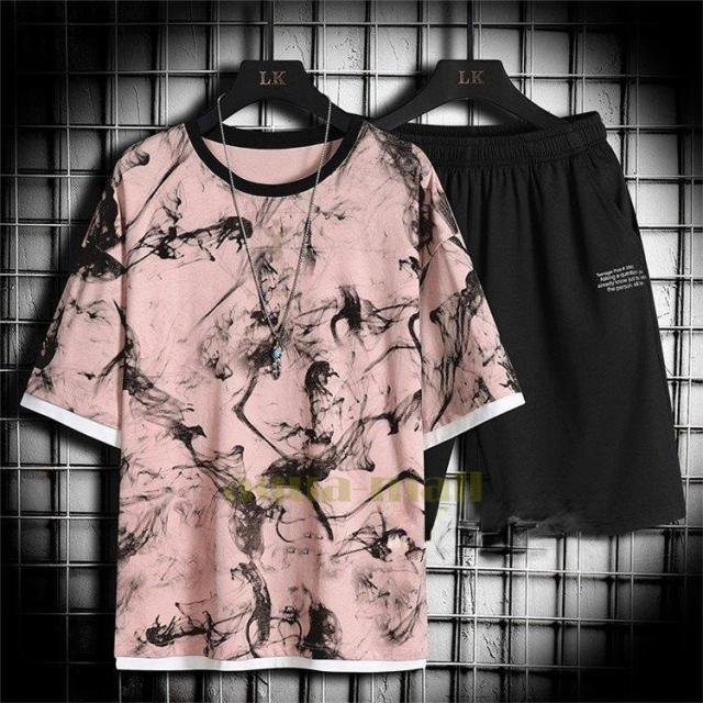 ジャージ上下 メンズ 半袖 セットアップ タイダイ 総柄 スポーツウェア 上下セット 運動着 部屋着 スウェット 夏