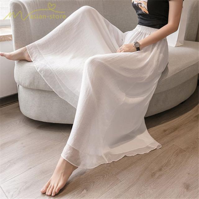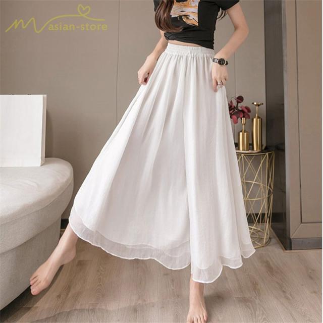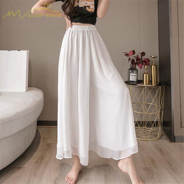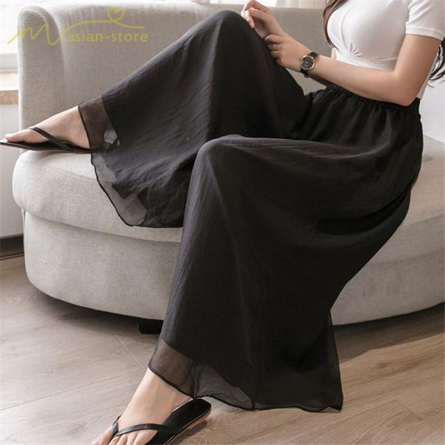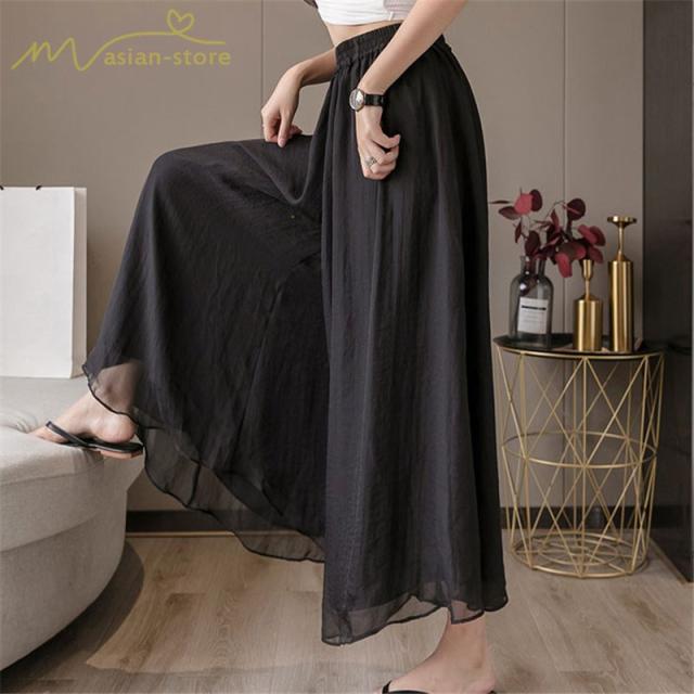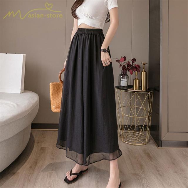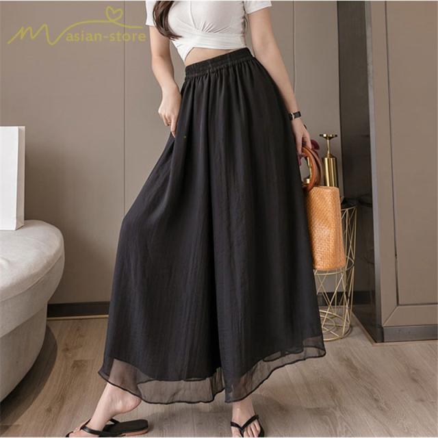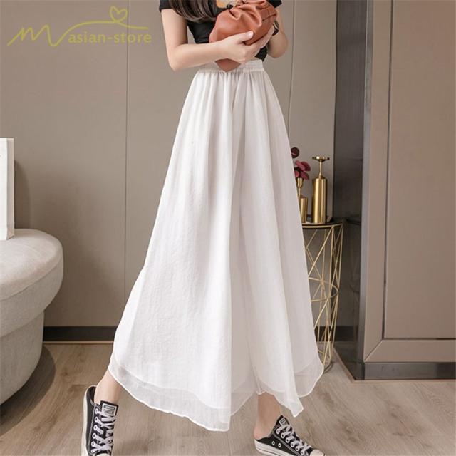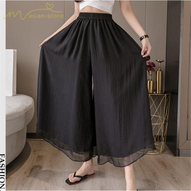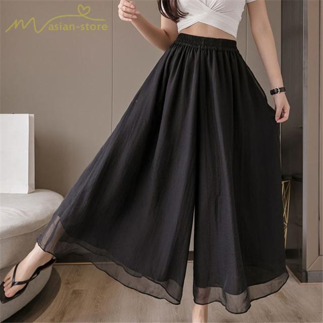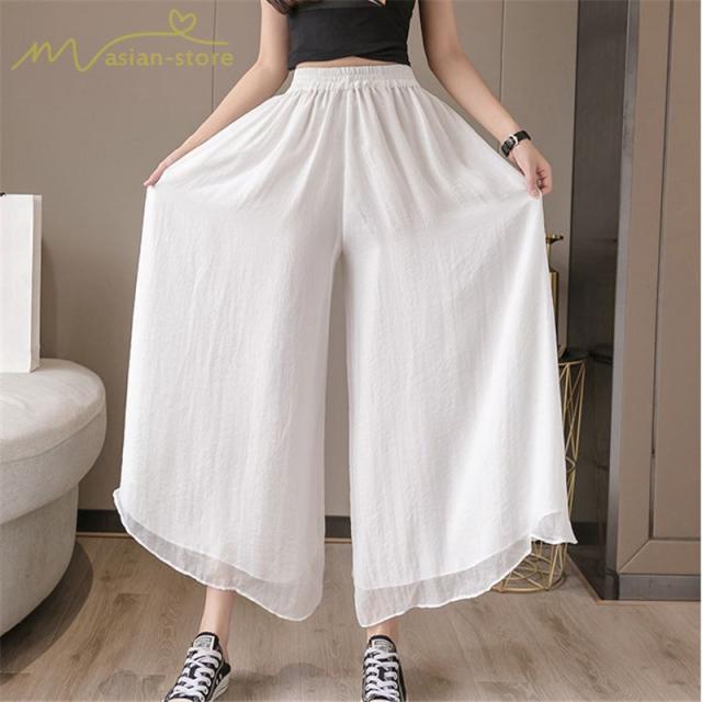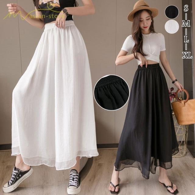 ワイドパンツ キュロット 大きいサイズ ハイウエスト ウエストゴム ストレッチ 透け感 ゆったり レディース カジュアル 薄手 カジュアル スタイリッシュ