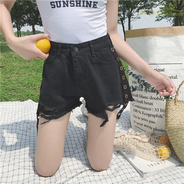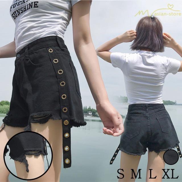 デニムパンツ ショーパン ジーンズ ホットパンツ 不規則パンツ ゆったり Aライン ワイドパンツ 夏コーデ フリンジパンツ ダメージ加工 シングル オシャレ