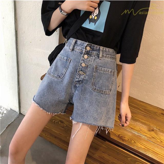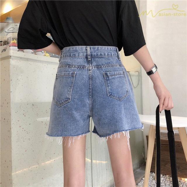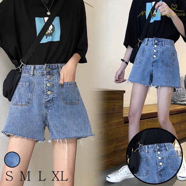 ジーンズ デニムパンツ 夏コーデ フリンジ 着痩せ ワイドパンツ ホットパンツ ジーパン レディース デイリーコーデ ゆったり シングル ハイウエスト 韓国風