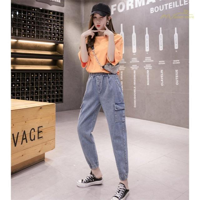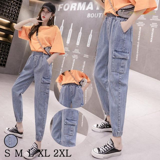 ジーンズ デニムパンツ デイリーコーデ ウエストゴム ストレート ハイウエスト トレンド ハイウエスト カジュアル シンプル 九分丈パンツ 無地 ブルーマー