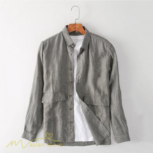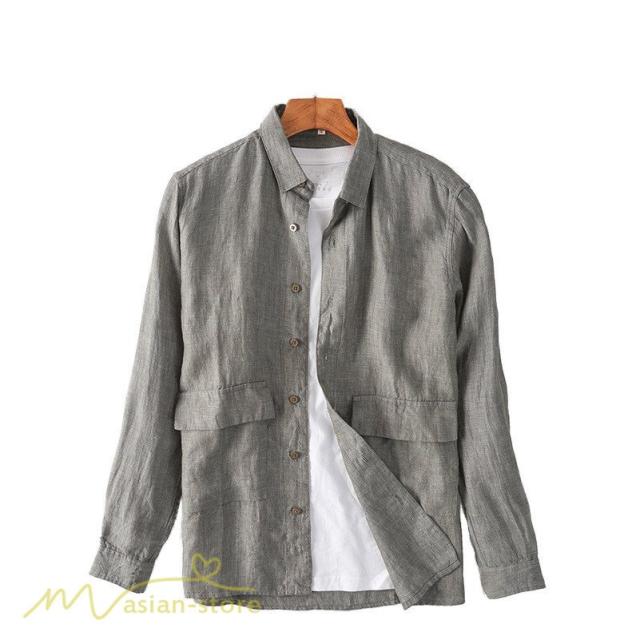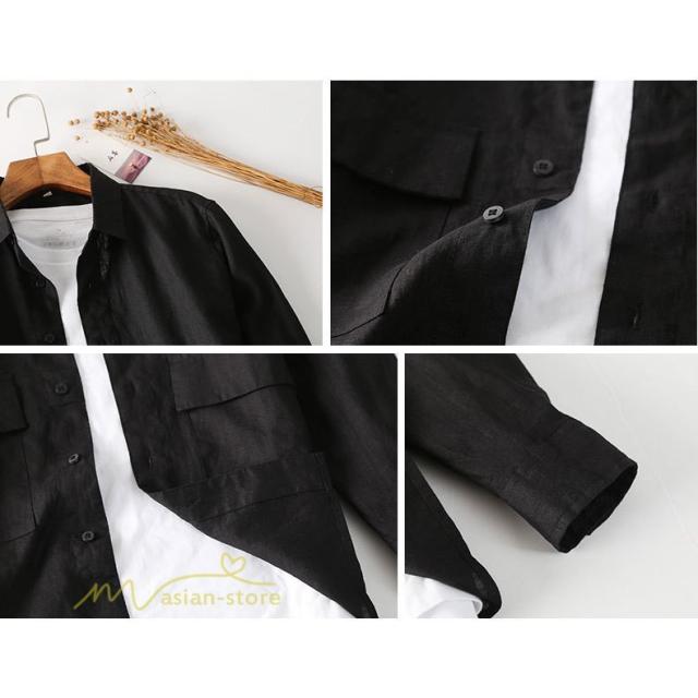 秋シャツ メンズ 長袖 開襟シャツ 秋新作 トップス メンズシャツ ライトアウター 着回し カジュアルシャツ 麻 シンプル シャツジャケット 通勤通学 無地