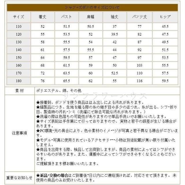 | サイズについての説明 | 参考サイズ(単位:cm) 120/130/140/150/160/170 120:お勧め身長:110-120cm 130:お勧め身長:120-130cm 140:お勧め身長:130-140cm 150:お勧め身長:140-150cm 160:お勧め身長:150-160cm 170:お勧め身長:160-170cm モデル情報: 女の子:身長130CM 体重19KG 着用サイズ130CM 男の子:身長130CM 体重25KG 着用サイズ130CM ★PC環境 光の具合により色 質感のイメージが画像と若干異なる場合がございますので予めご了承くださいませ。 |