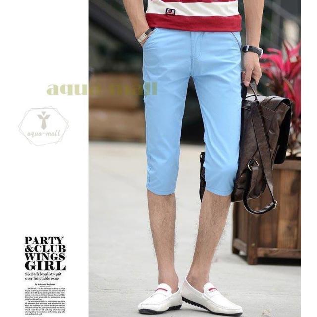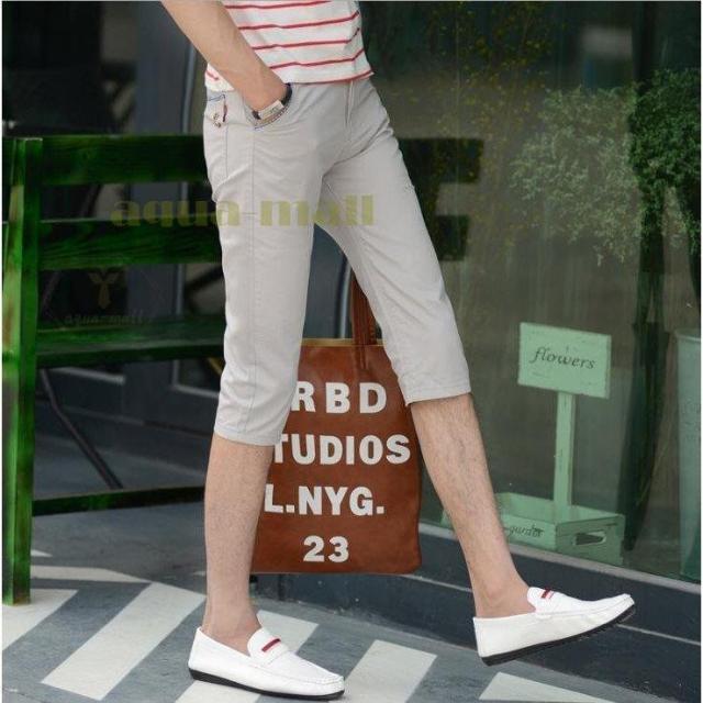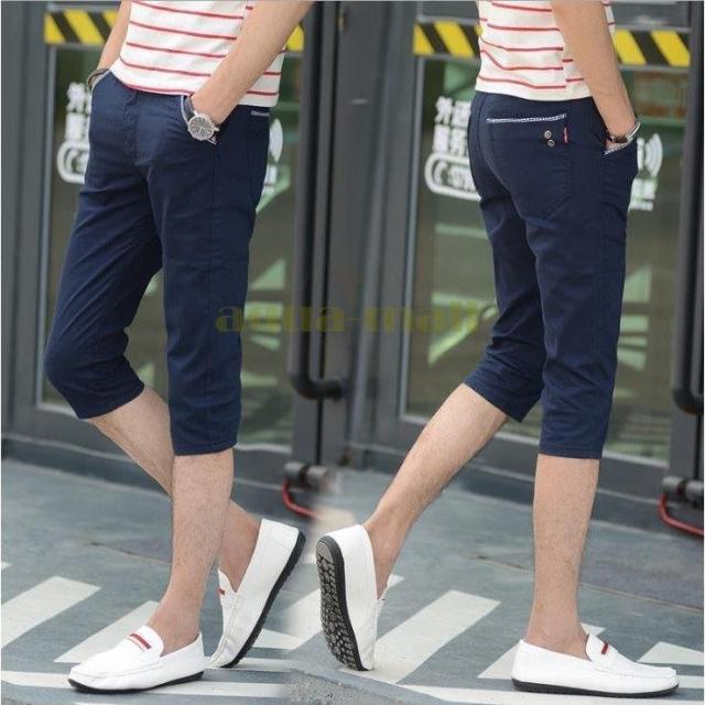 クロップド チノパン メンズ スリム スキニー クロップドパンツ スキニーパンツ クロップド丈 7分丈 ボトムス 無地細身 タイト ビター系 お兄系