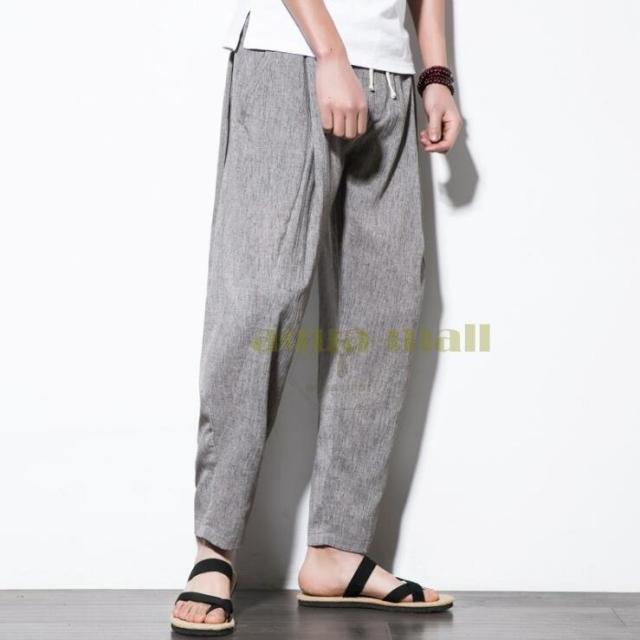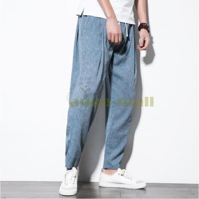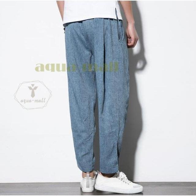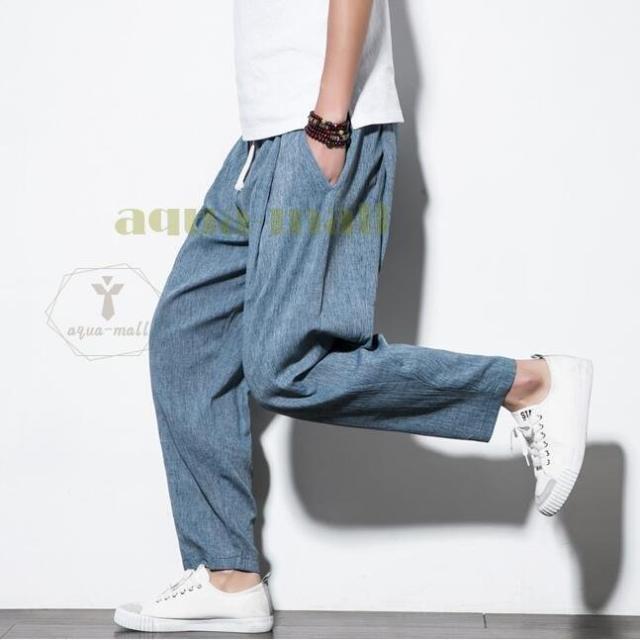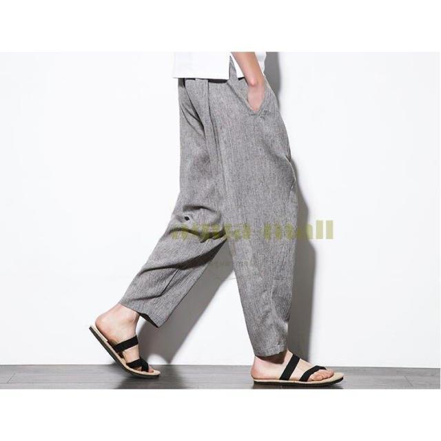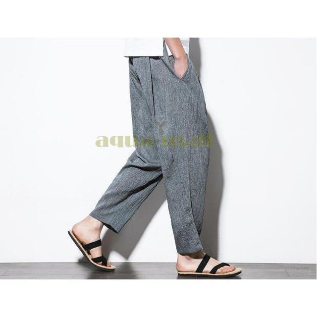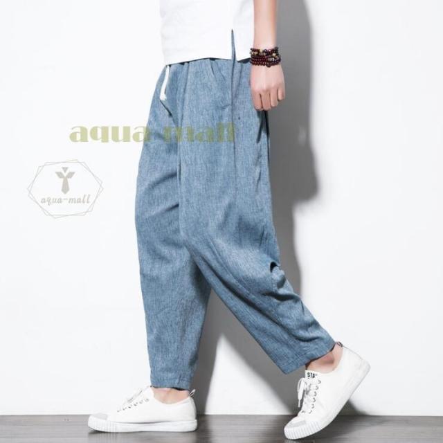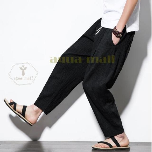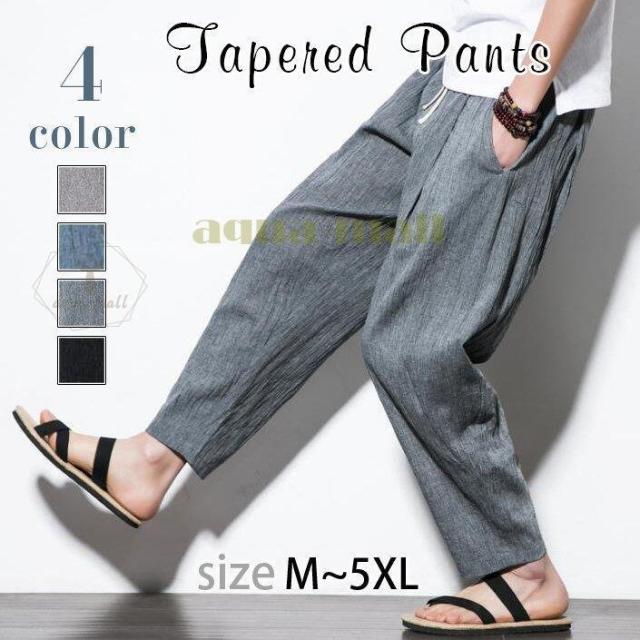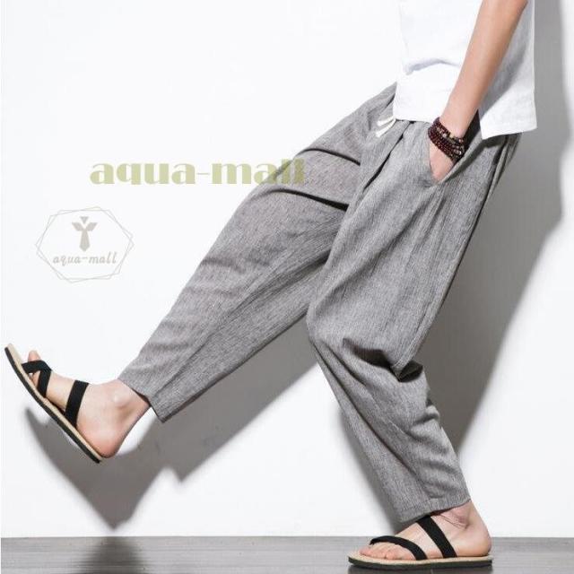 サルエルパンツ テーパード 涼しい ガウチョパンツ メンズ 無地 綿麻風 サルエル リネン ゆったり