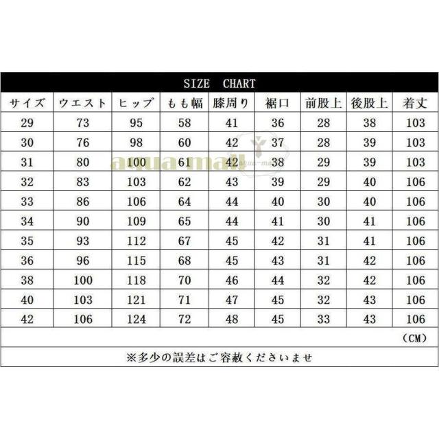 | サイズについての説明 | 【カラー】 ブラック、ネイビー、ブル、ダークグレー、ライトグレー 【サイズ】29 30 31 32 33 34 35 36 38 40 42 |