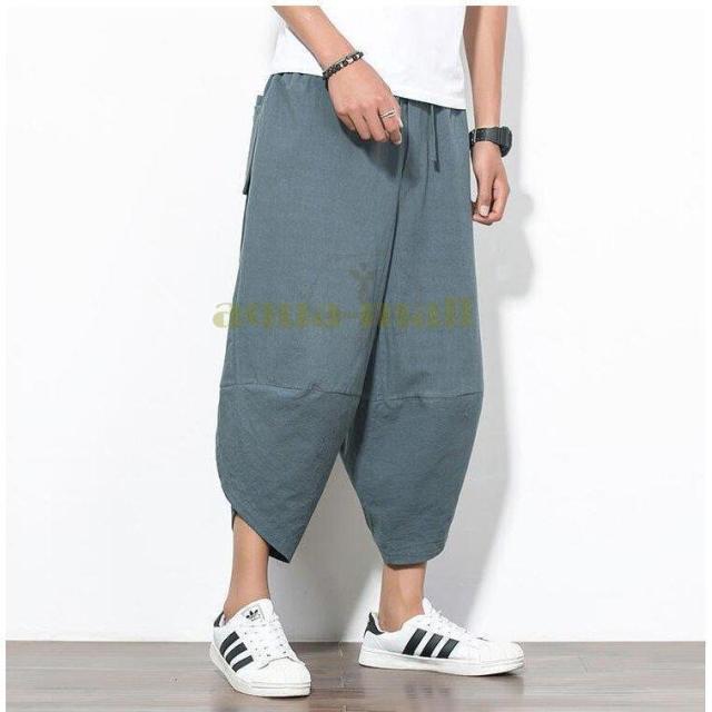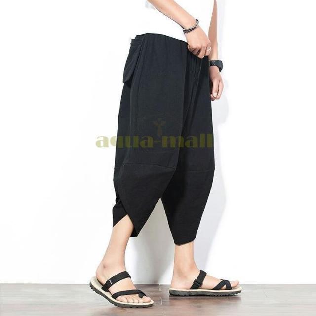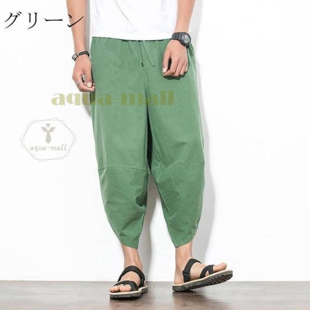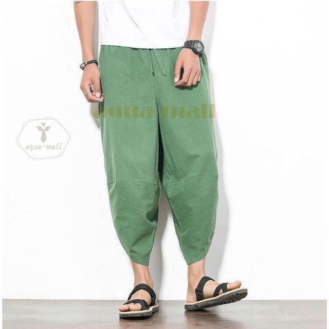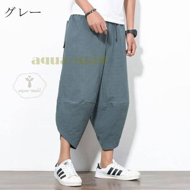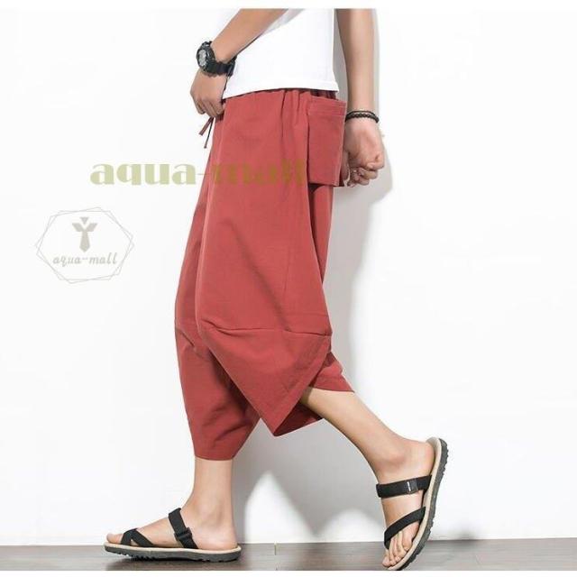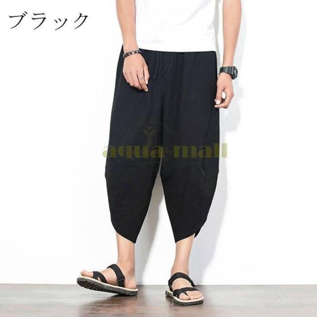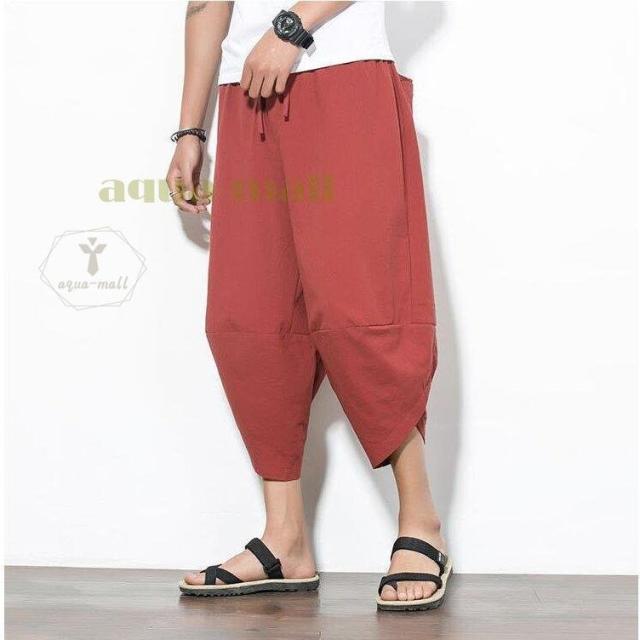 ワイドパンツ メンズ サルエルパンツ 無地 綿麻風 カジュアル メンズズボン ガウチョパンツ 9分丈 ゆったり