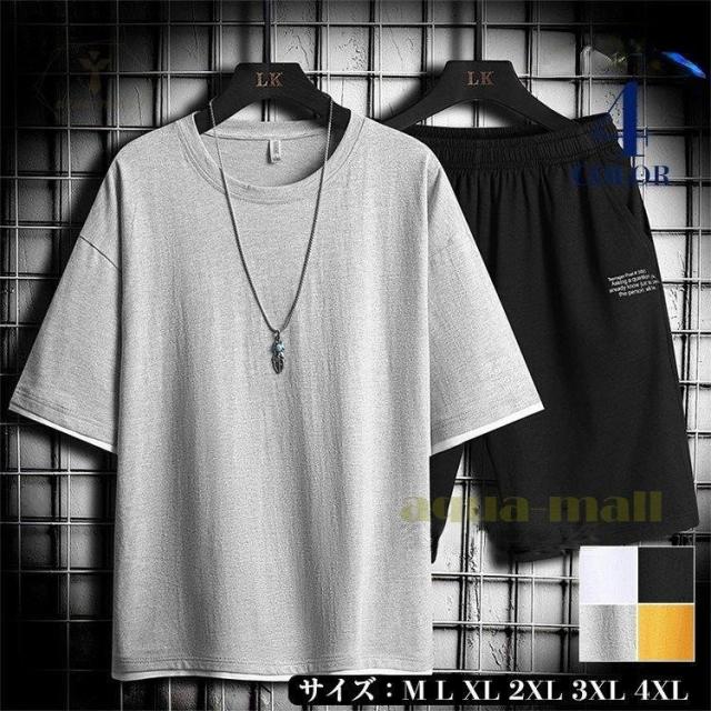 ジャージ上下 メンズ 半袖 セットアップ 無地 スポーツウェア 上下セット スウェット 夏 運動着 部屋着