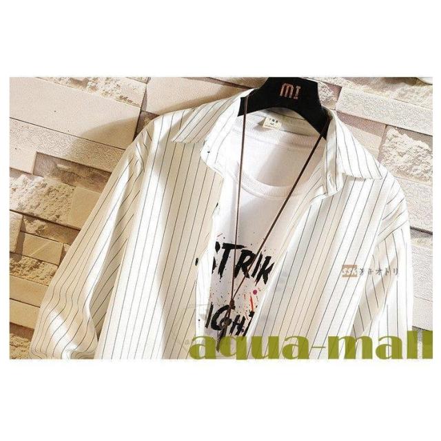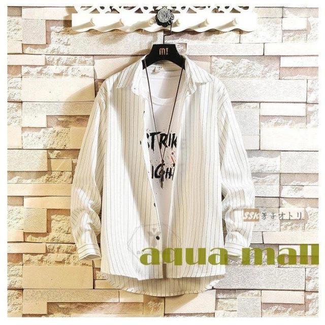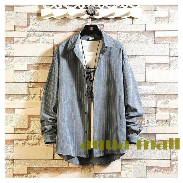 ストライプシャツ メンズ シャツ カジュアルシャツ ビッグシルエット 長袖シャツ トップス ゆったり