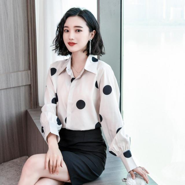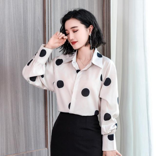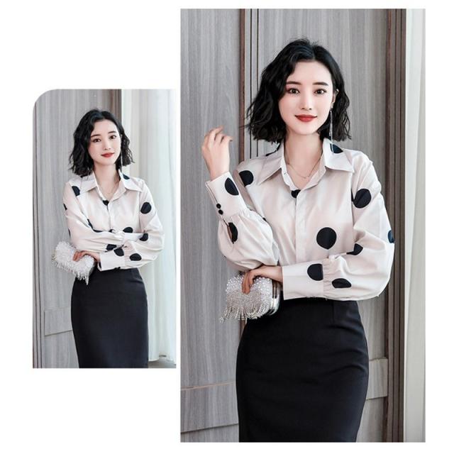 ブラウス 春夏 大きいサイズ シフォンブラウス レディース ドット柄シャツ 長袖ブラウス シフォンシャツ リゾートブラウス ゆったり カジュアル