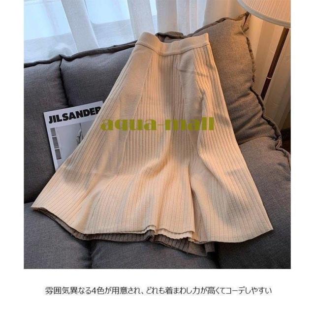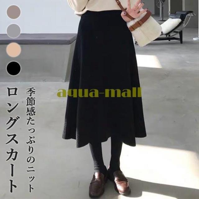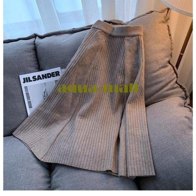 ニットスカート レディース スカート 冬 ロングスカート ニット プリーツスカート Aラインスカート 秋 厚手 ミモレ丈スカート 暖かい レトロ