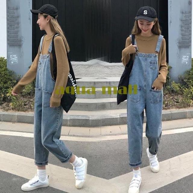 デニムサロペット レディース サロペット デニム オーバーオール 体型カバー サロペットパンツ ゆったり 九分丈 9分丈サロペット ロングシーズン