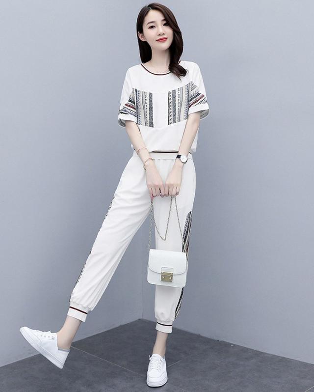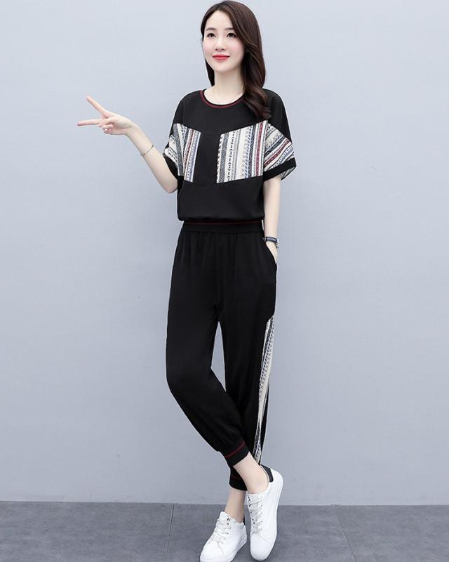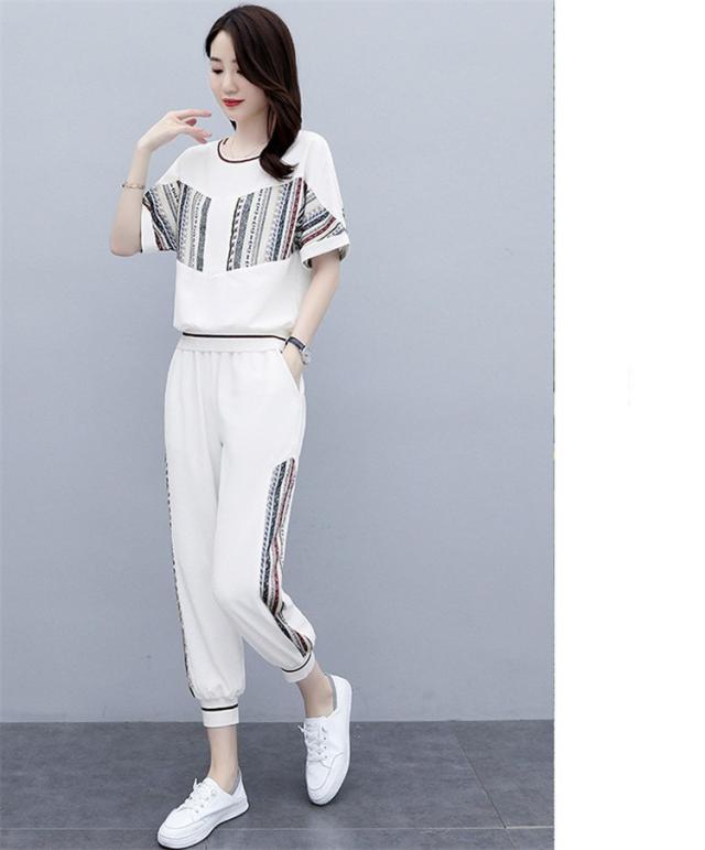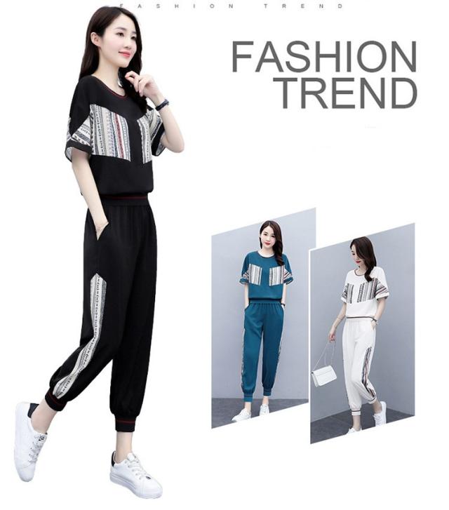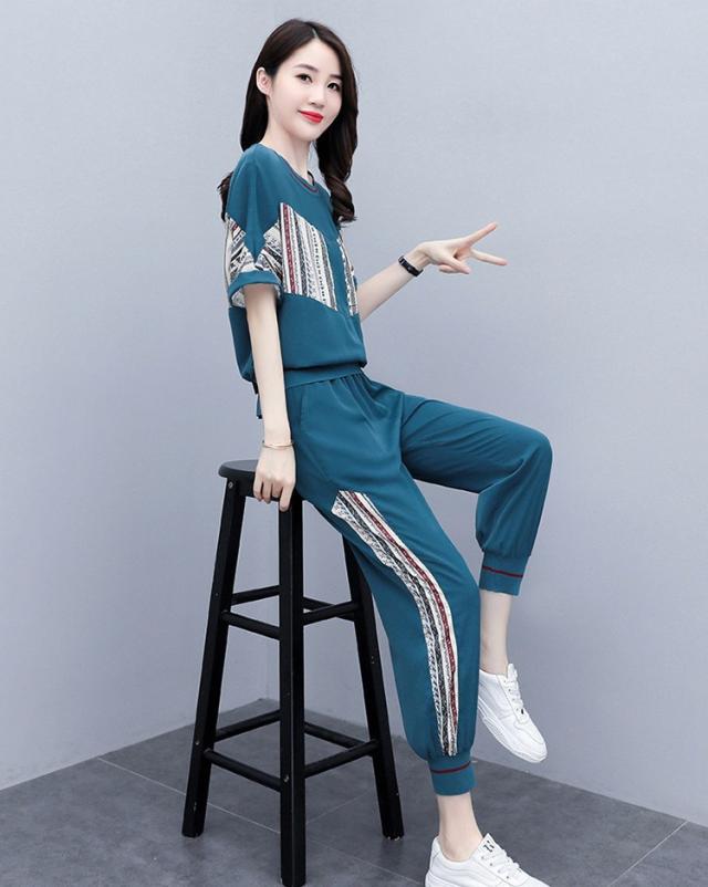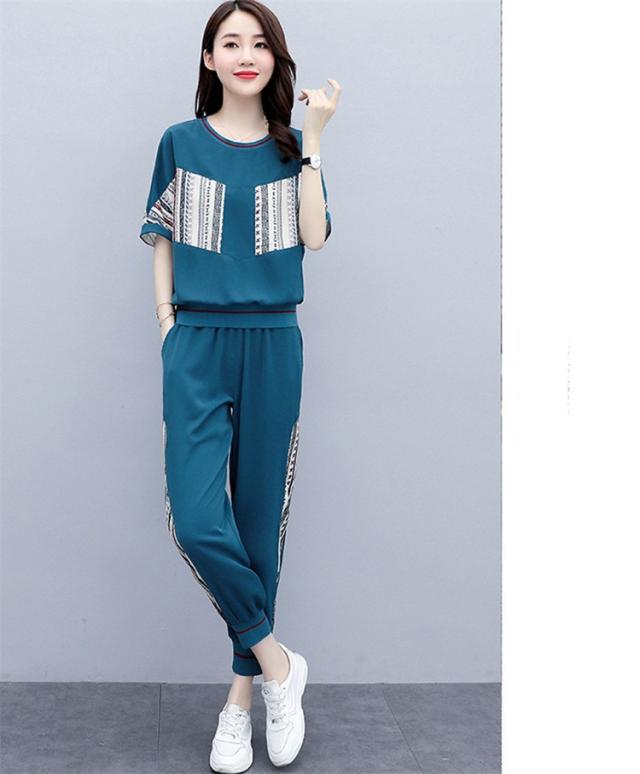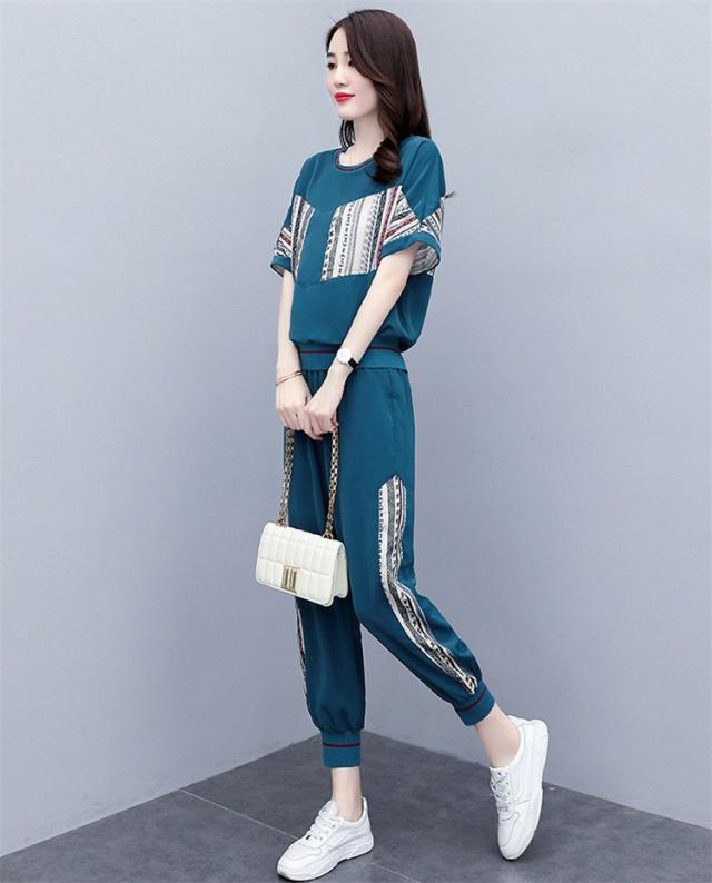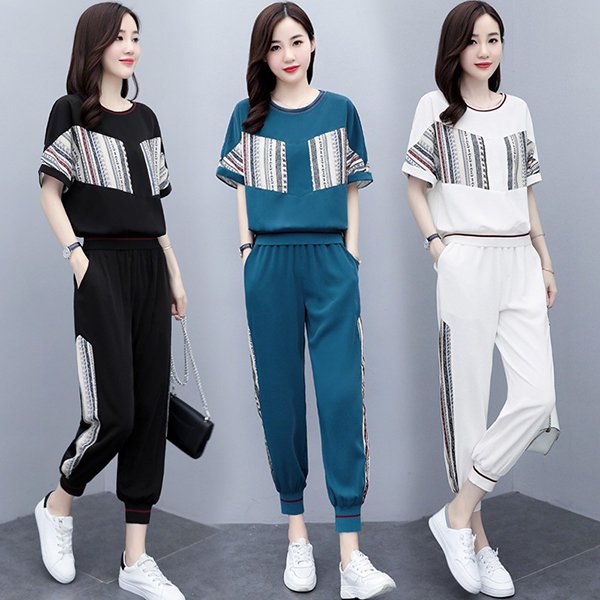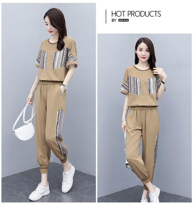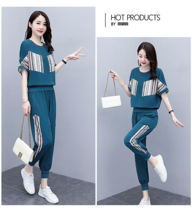ジャージ レディース 上下 セット 夏 おしやれ スウェット セットアップ 40代 Tシャツ 半袖 九分丈パンツ 薄手 部屋着 スポーツウェア 大きいサイズ 着痩せ 新品