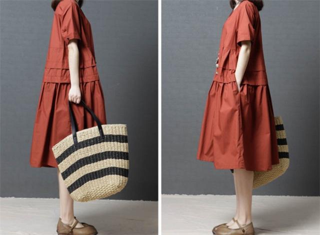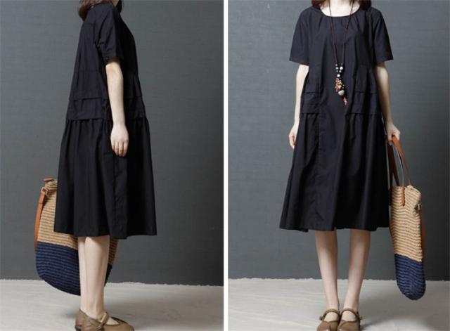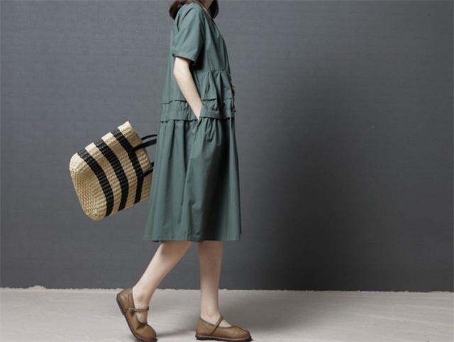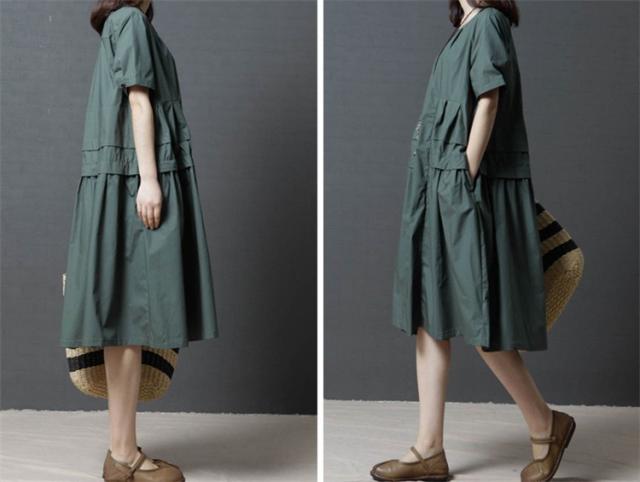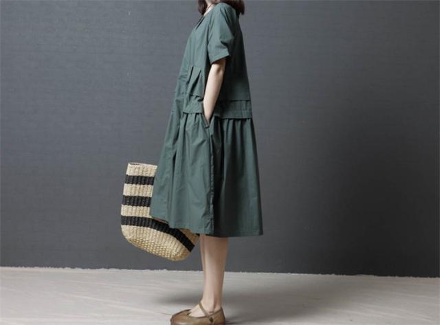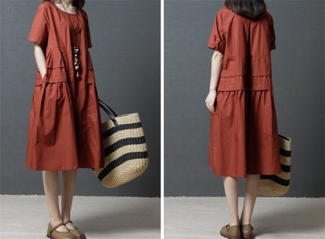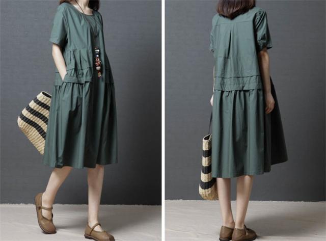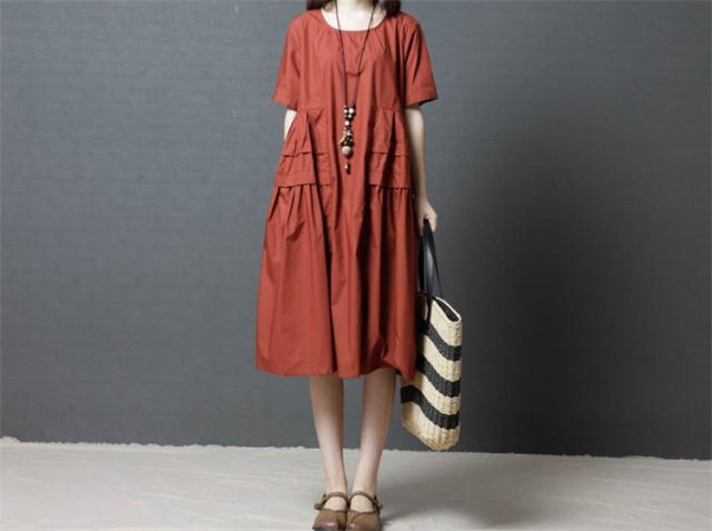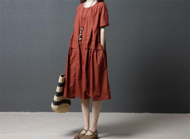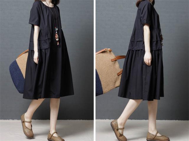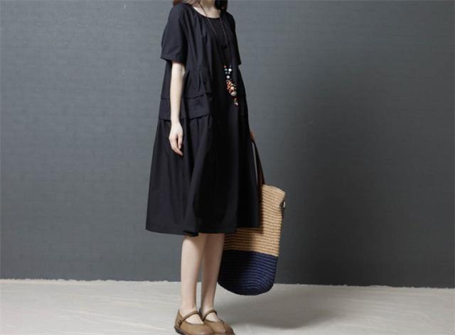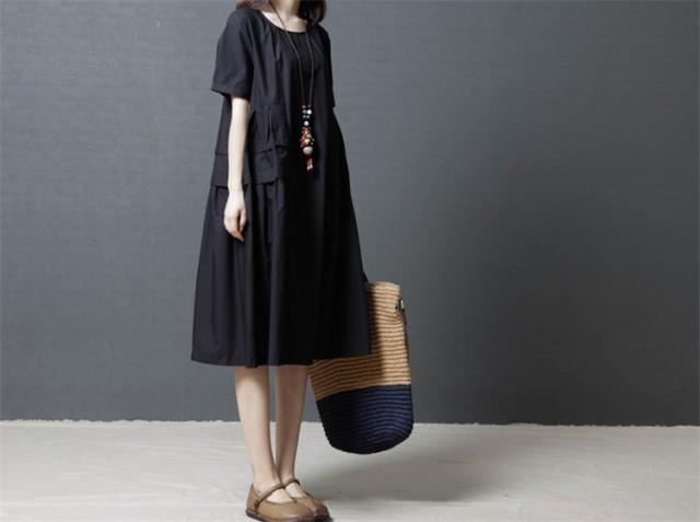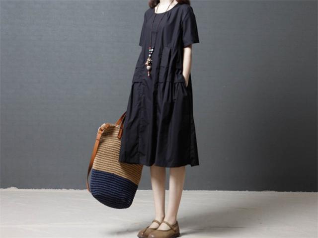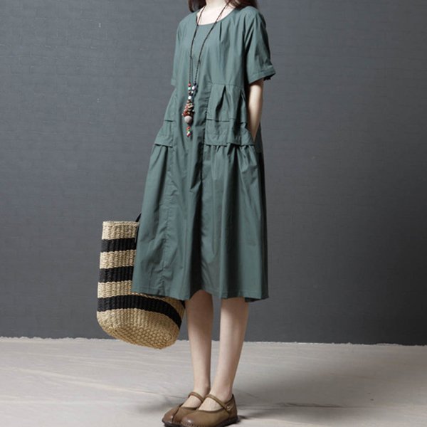 ワンピース レディース 40代 20代 夏 半袖 きれいめ 上品 マキシワンピース ロング丈 丸襟 無地 大きいサイズ ゆったり おしゃれ 韓国風 着痩せ 通勤 OL 新品