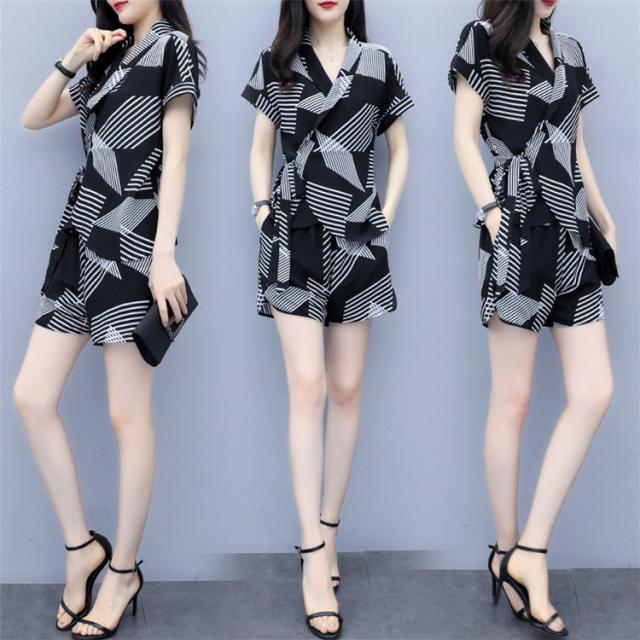 セットアップ レディース 夏 カジュアル 40代 20代 おしゃれ 上下セット ブラウス 半袖 ショートパンツ シフォン ストライプ 大きいサイズ 韓国風 着痩せ 通勤