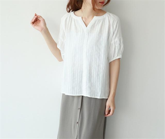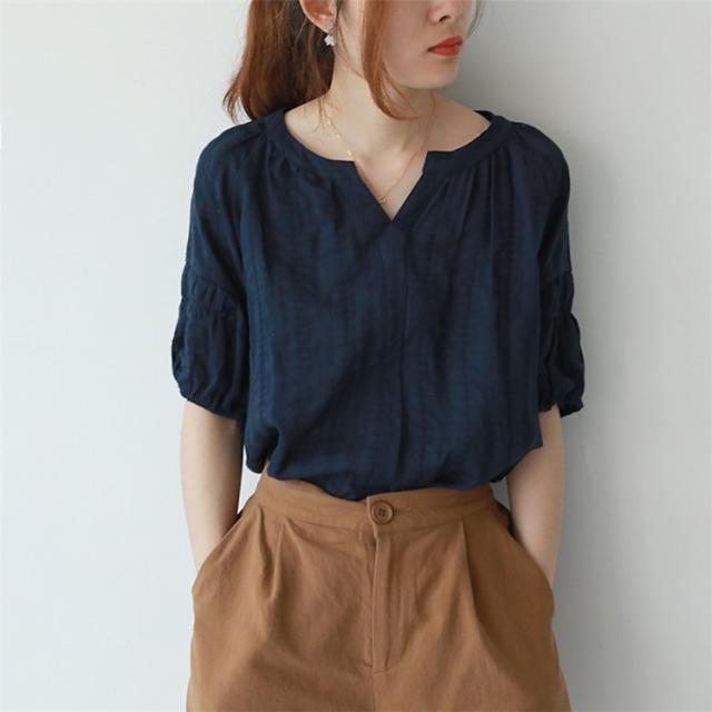 ブラウス レディース オフィス 半袖 40代 おしゃれ 春夏 カジュアル トップス 半袖シャツ Vネック ロング きれいめ 大きいサイズ 通勤 上品 着痩せ 韓国風 新品