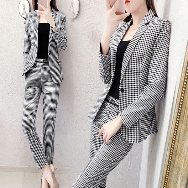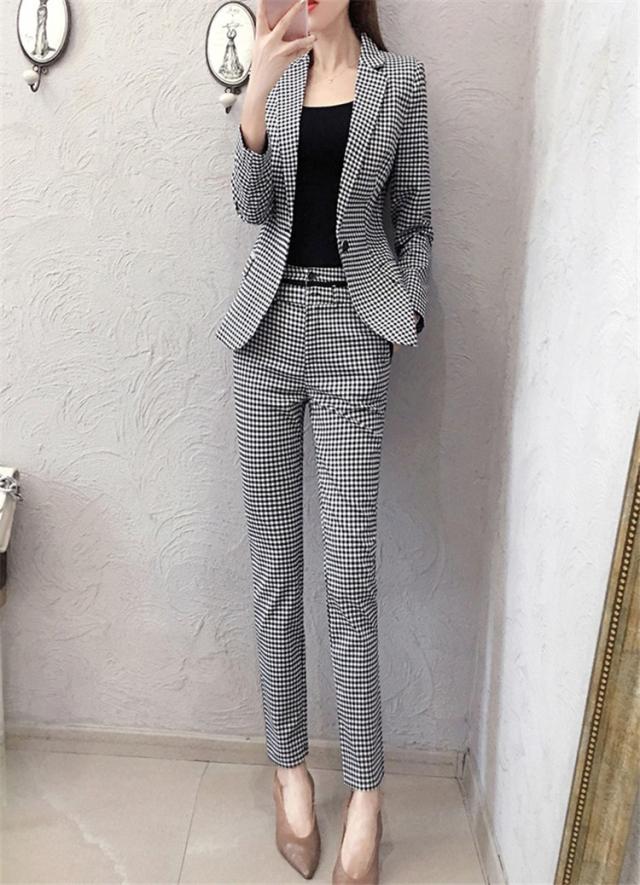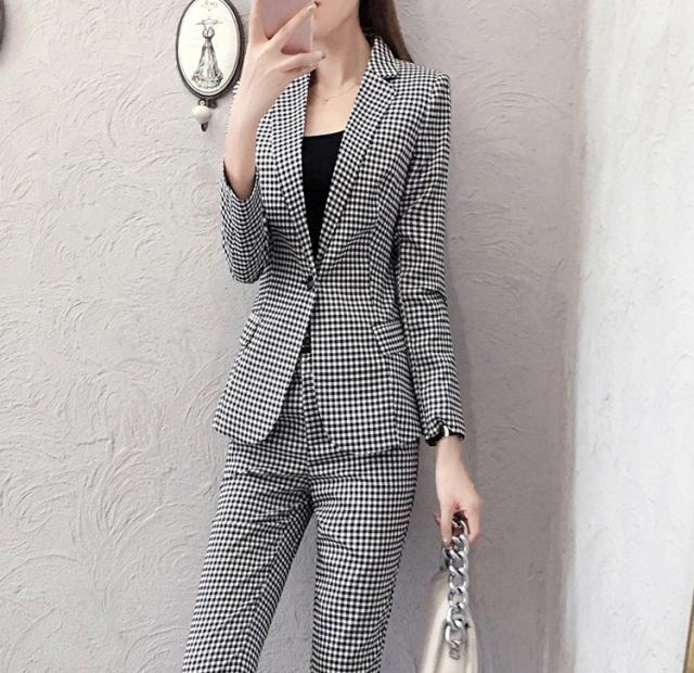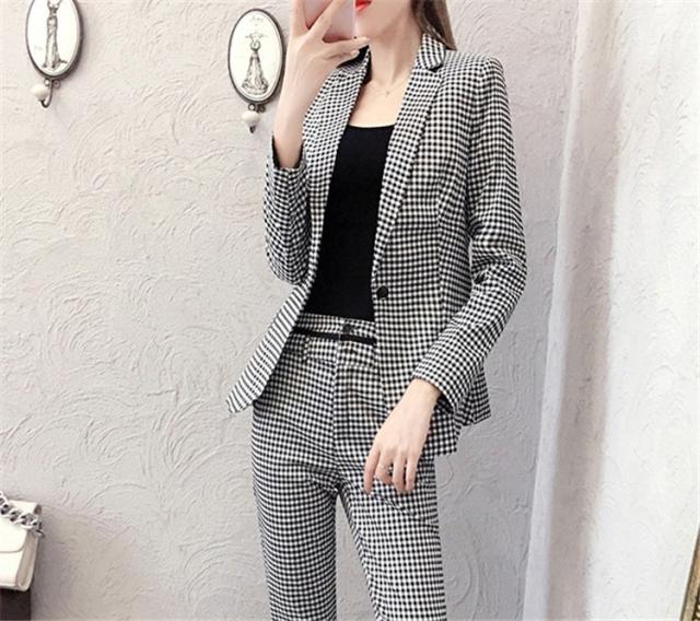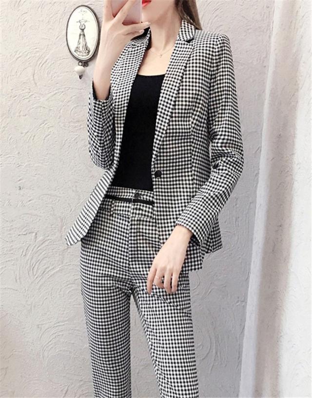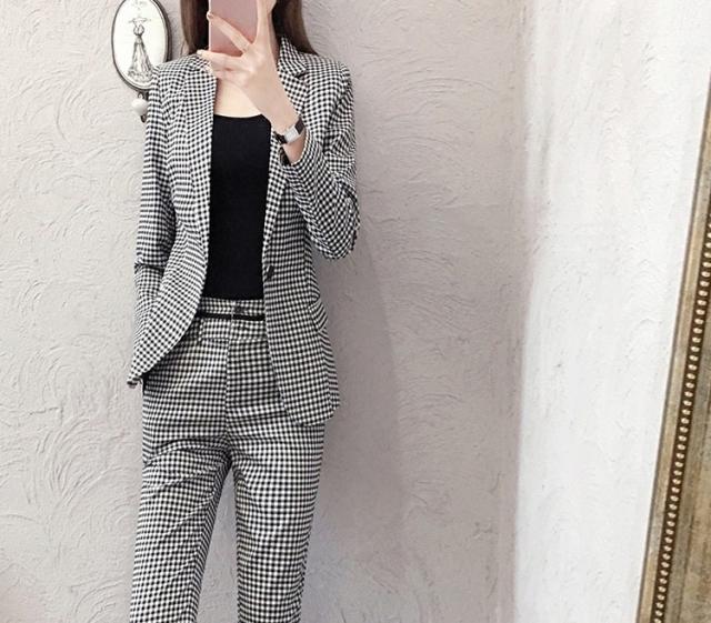 セットアップ レディース 長袖 春秋 40代 フォーマル 2点セット アウター チェック柄 ロングパンツ パンツスーツ オフィス 大きいサイズ おしゃれ 着痩せ 通勤