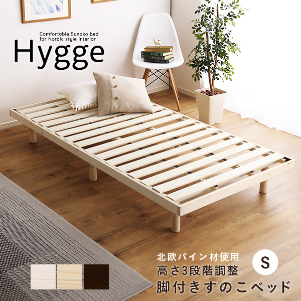 Hygge ヒュッゲ 天然木すのこベッド セミダブル (ベッド すのこ 天然木 北欧パイン 高さ調節 脚付き リフレッシュ 消臭 抗菌 防臭 森林浴効果 通気性 フォースター 低ホルムアルデヒド おしゃれ おすすめ)