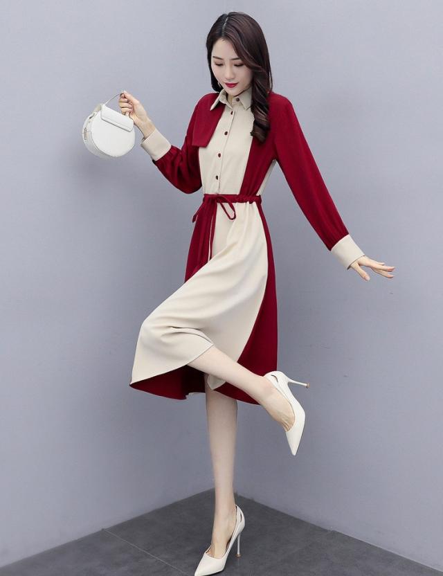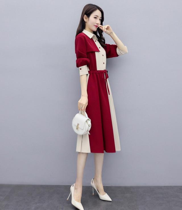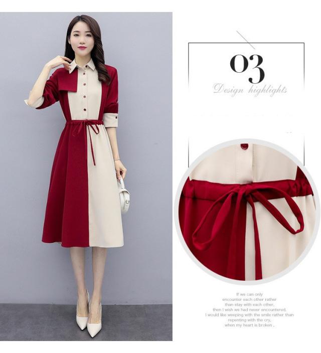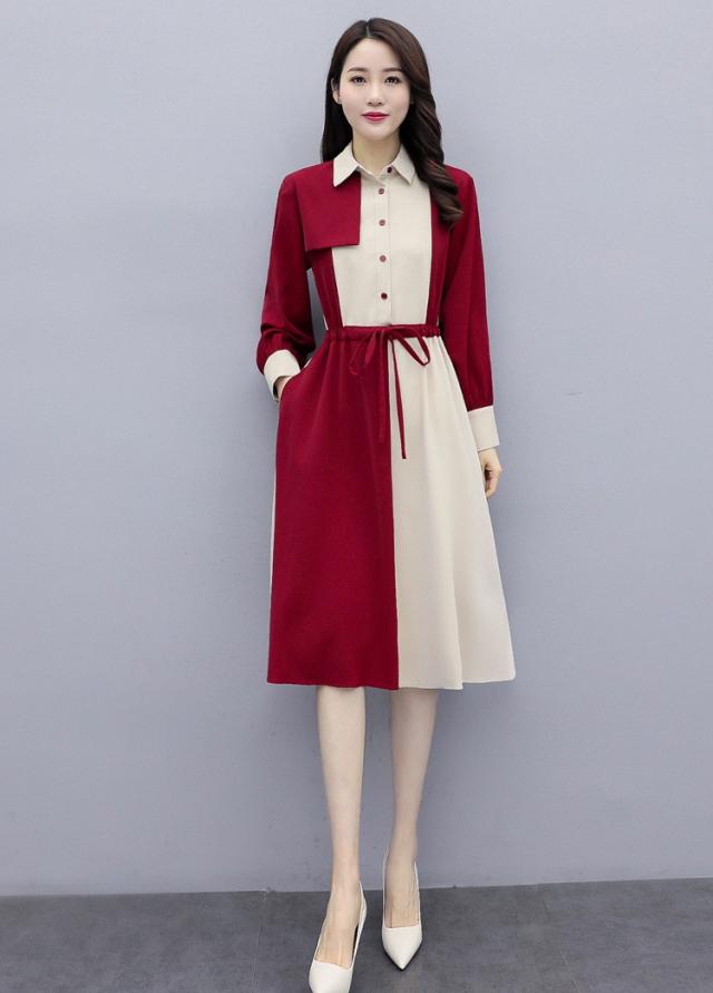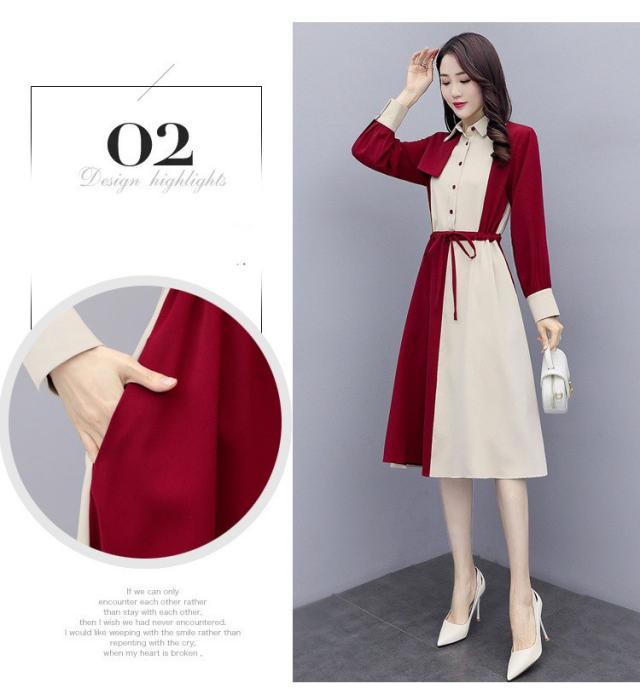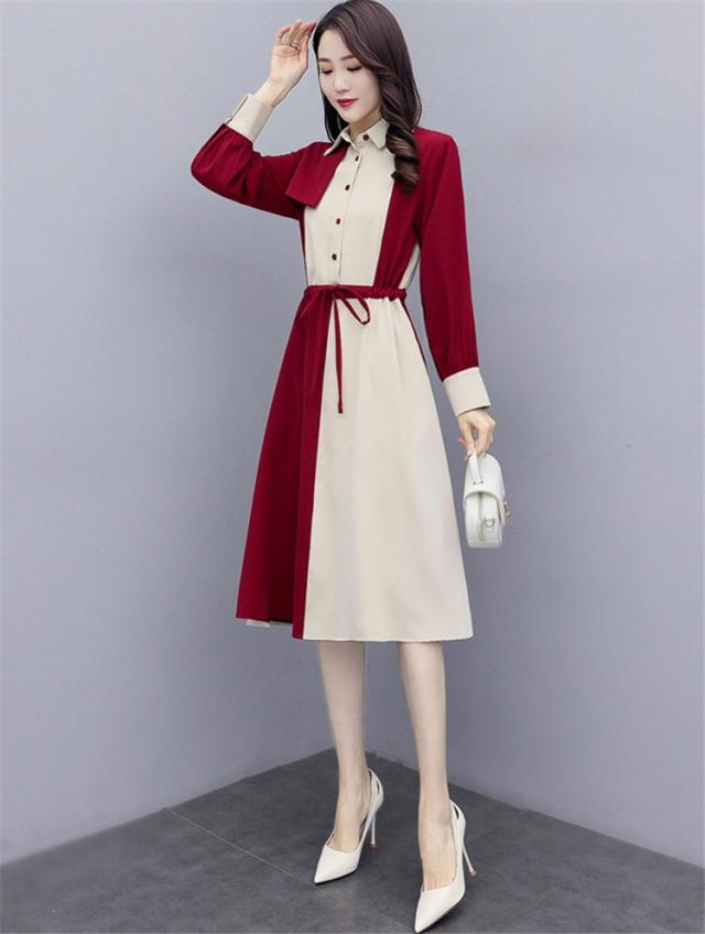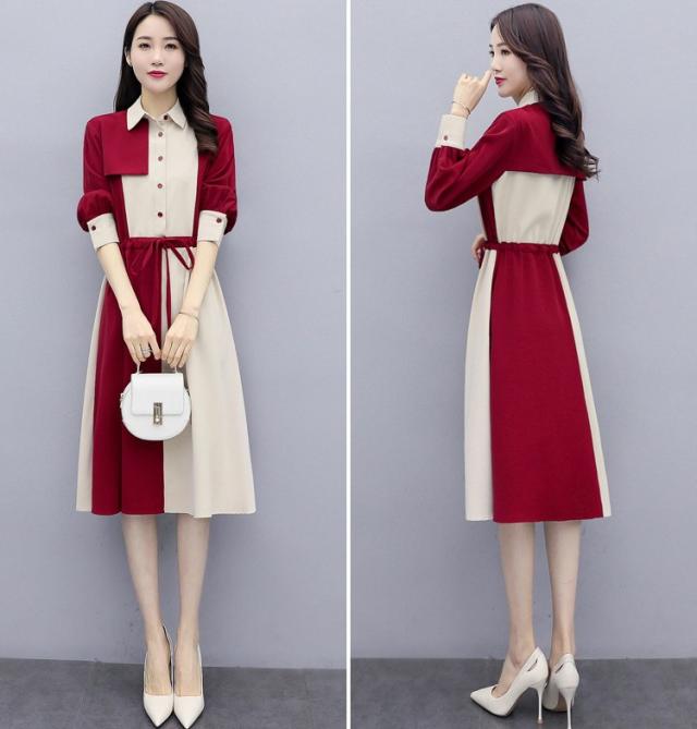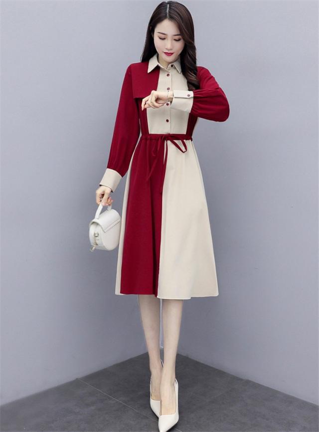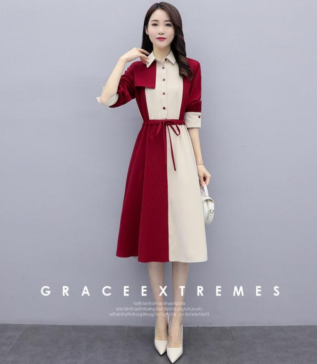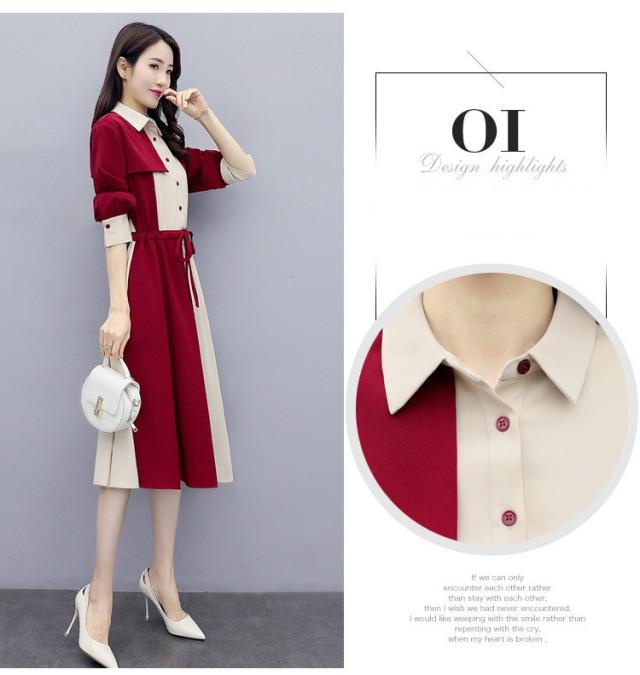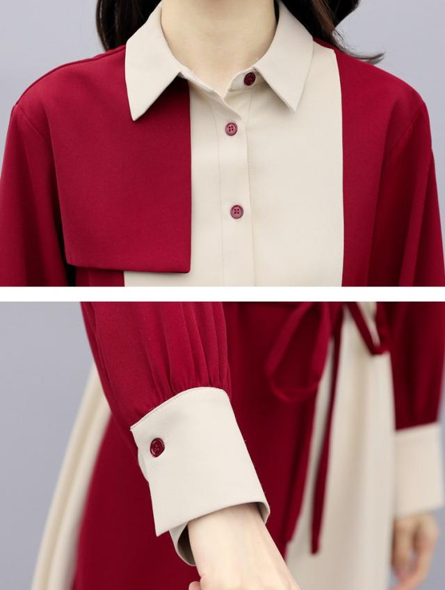 ワンピース レディース 40代 春秋 きれいめ 長袖 シャツワンピース 折り襟 ロング チュニック 大きいサイズ 体型カバー 韓国風 おしゃれ 着痩せ 上品 通勤 新品