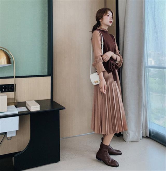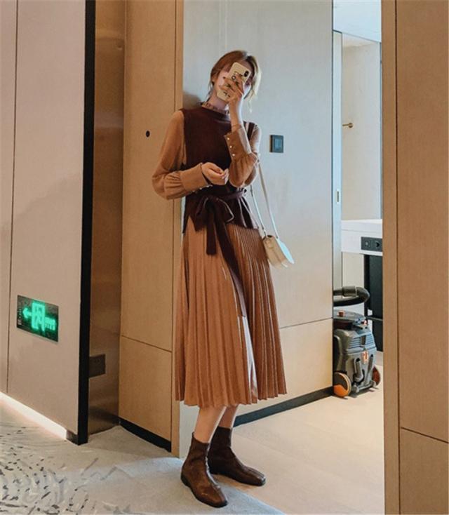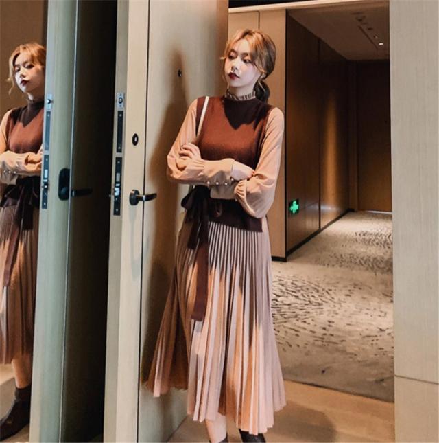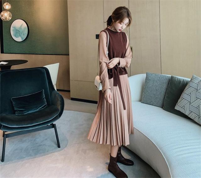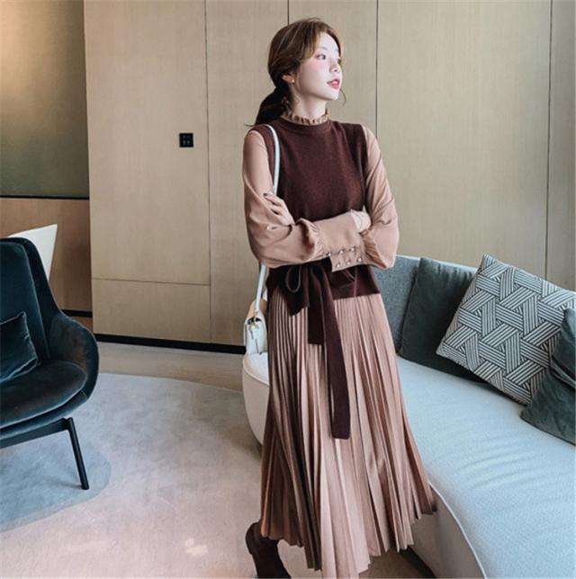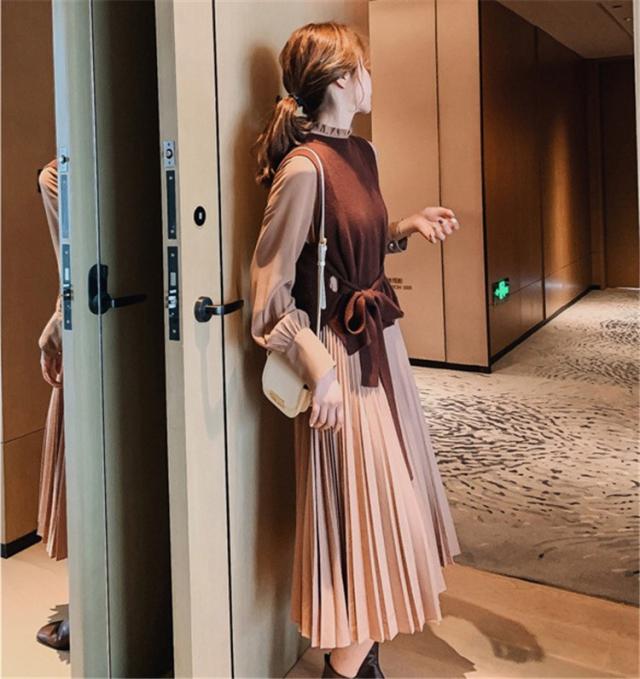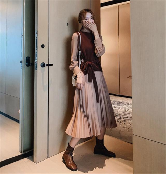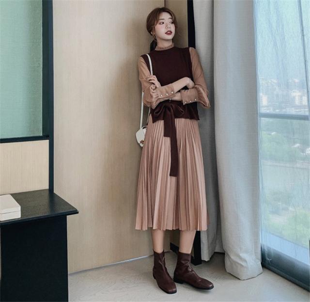 ワンピース レディース 40代 30代 きれいめ 春秋 長袖 上品 2点セット マキシワンピース チュニック 大きいサイズ パーティードレス 韓国風 おしゃれ 着痩せ