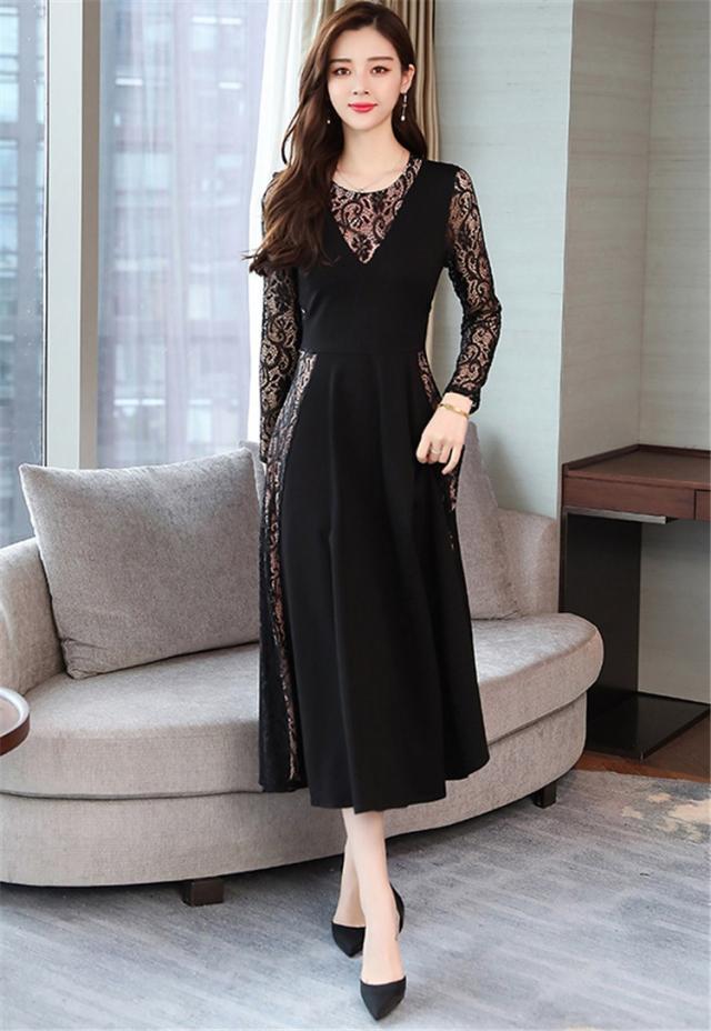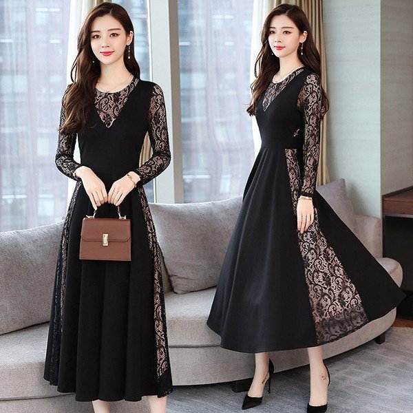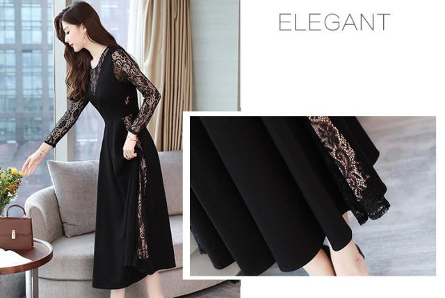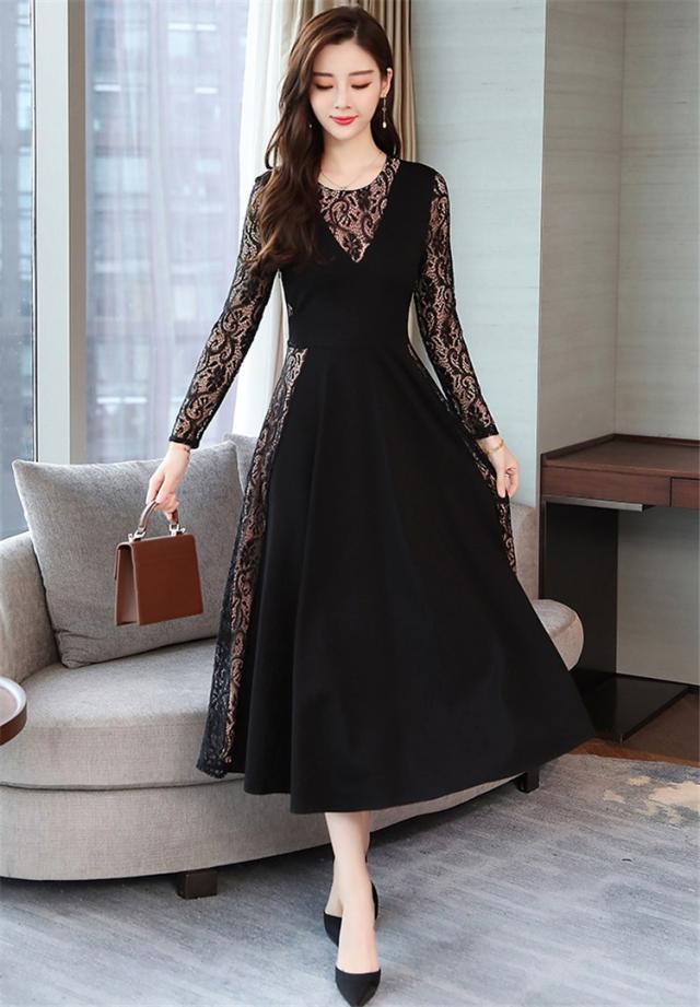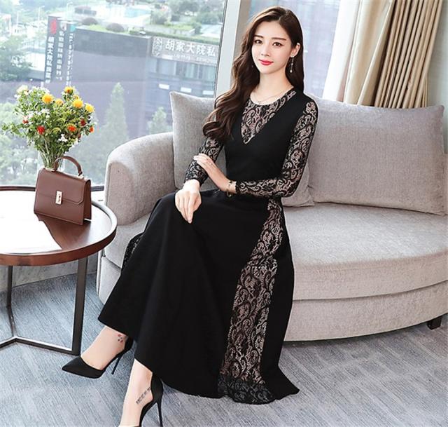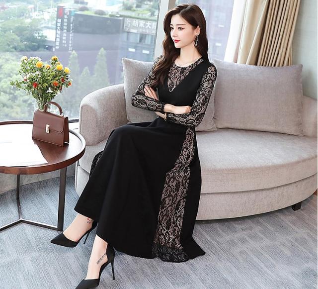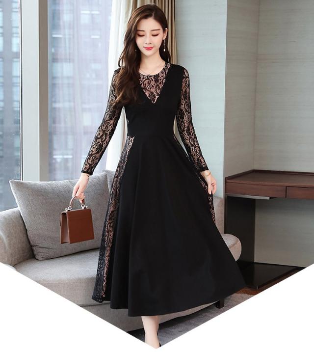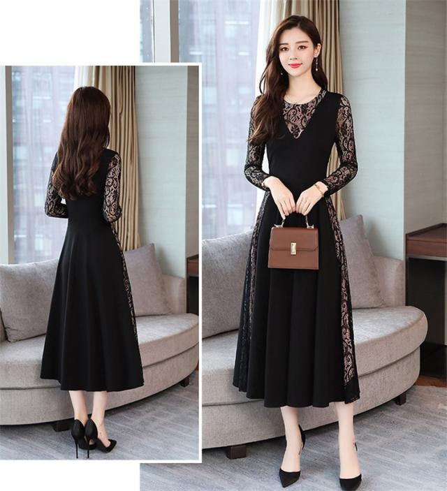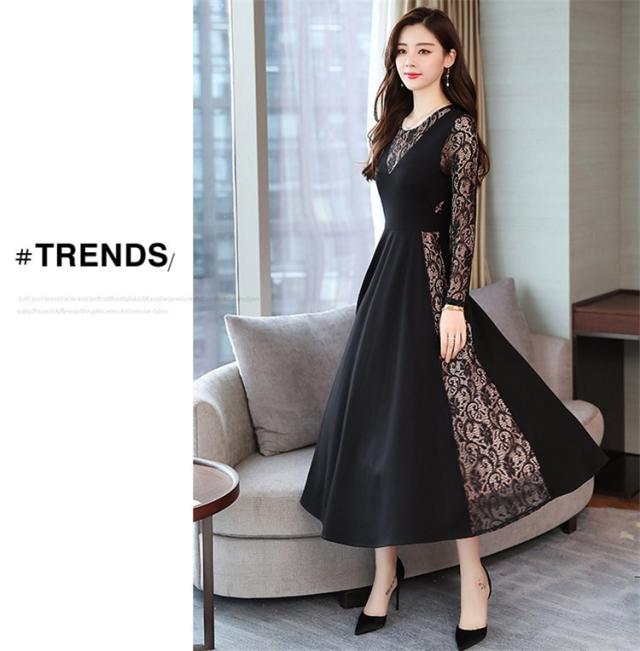 ワンピース レディース 40代 きれいめ 春秋 長袖 上品 レースワンピース ロング丈 チュニック 大きいサイズ パーティードレス 韓国風 おしゃれ 着痩せ 通勤 新品