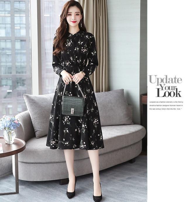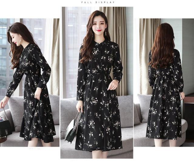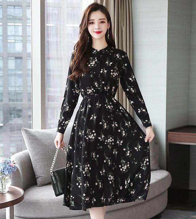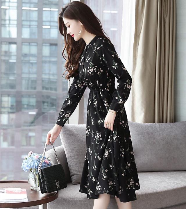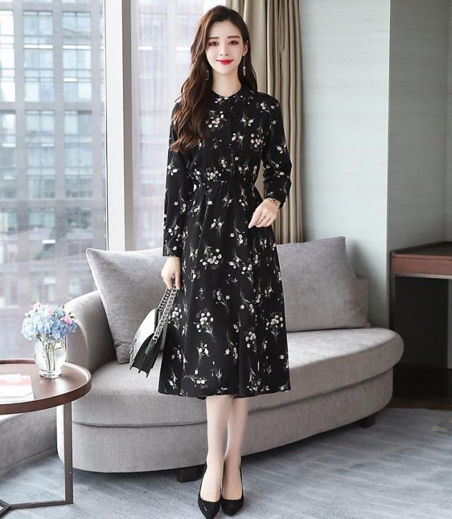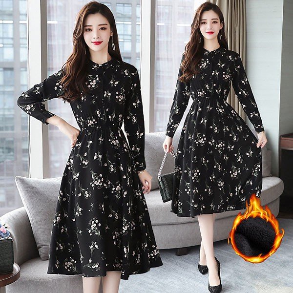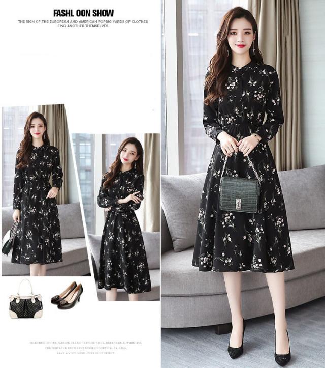 ワンピース レディース 40代 きれいめ 秋冬 裏起毛 長袖 上品 マキシワンピース ロング 花柄 チュニック 大きいサイズ パーティードレス 韓国風 おしゃれ 着痩せ