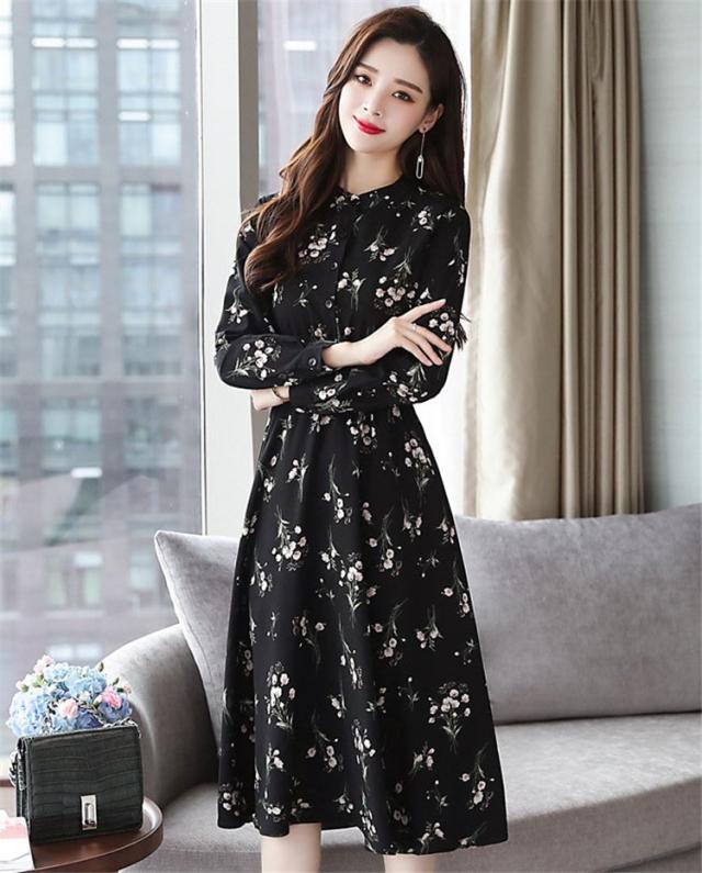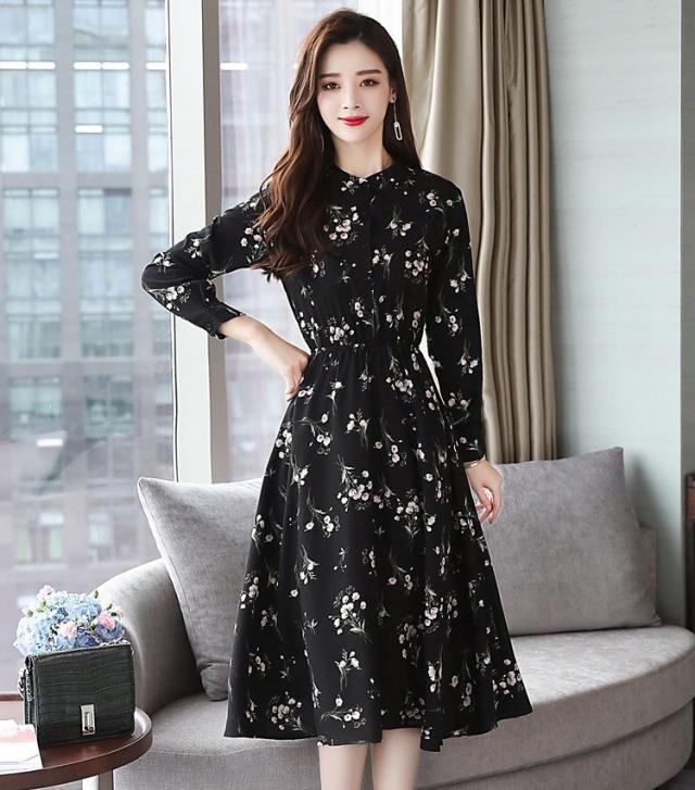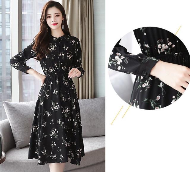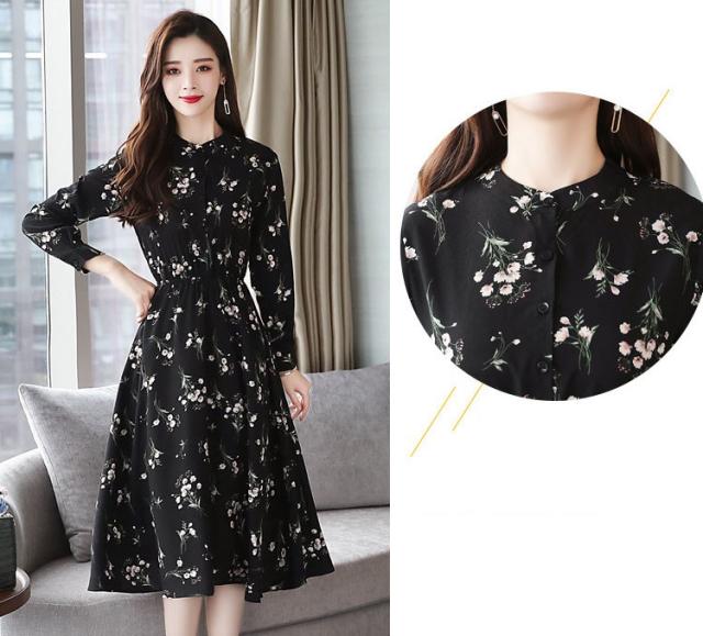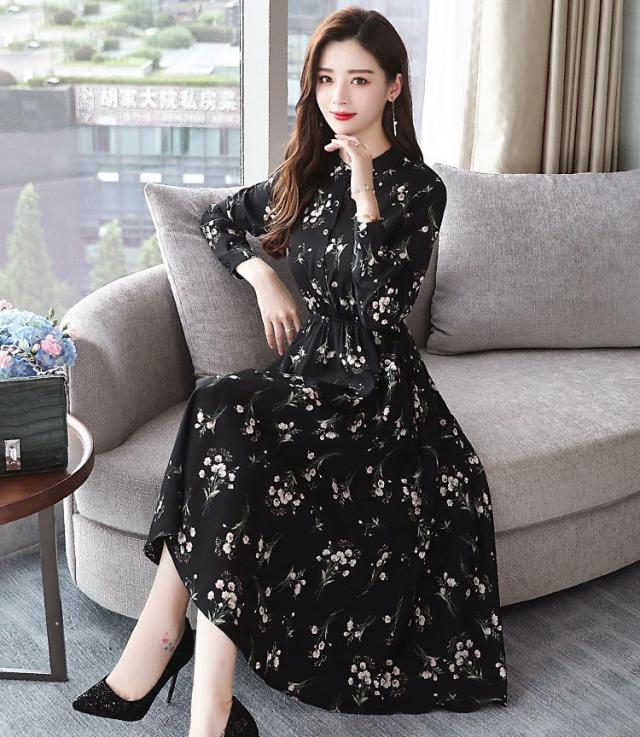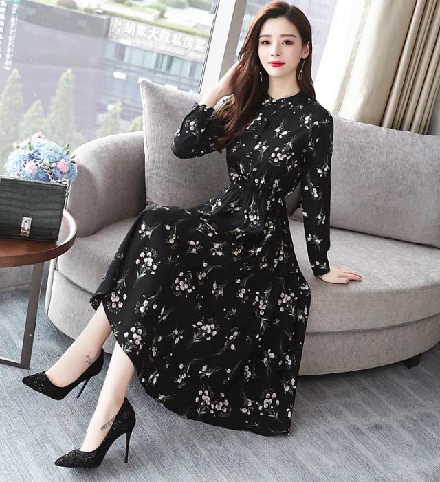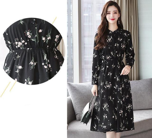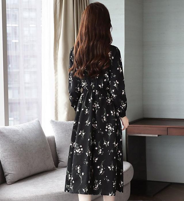ワンピース レディース 40代 きれいめ 秋冬 裏起毛 長袖 上品 マキシワンピース ロング 花柄 チュニック 大きいサイズ パーティードレス 韓国風 おしゃれ 着痩せ