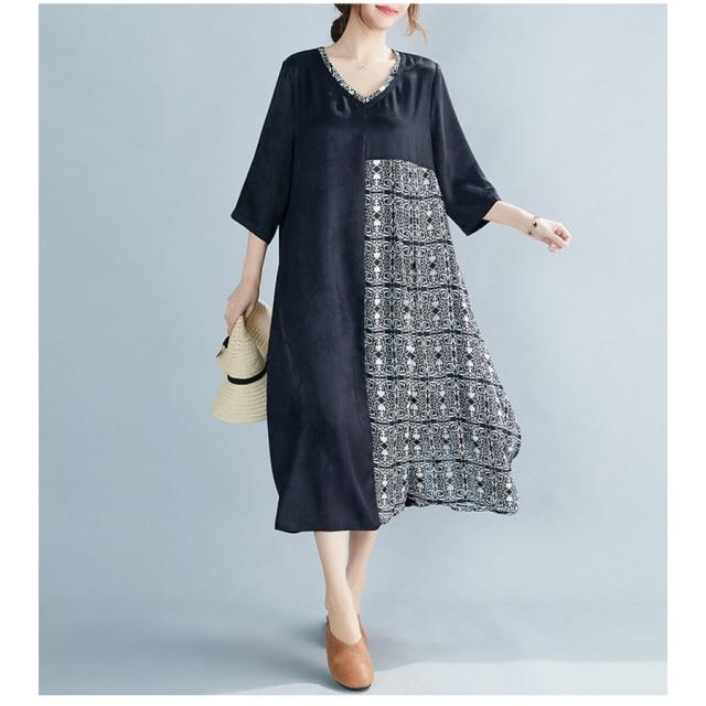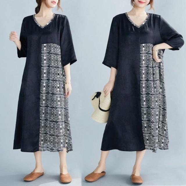 Vネック 夏ワンピース ロング丈ワンピ レディース ロング ロングワンピース 大きいサイズ 体型カバー