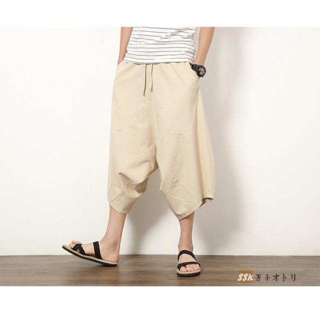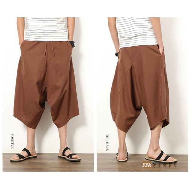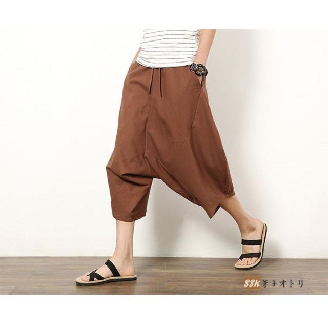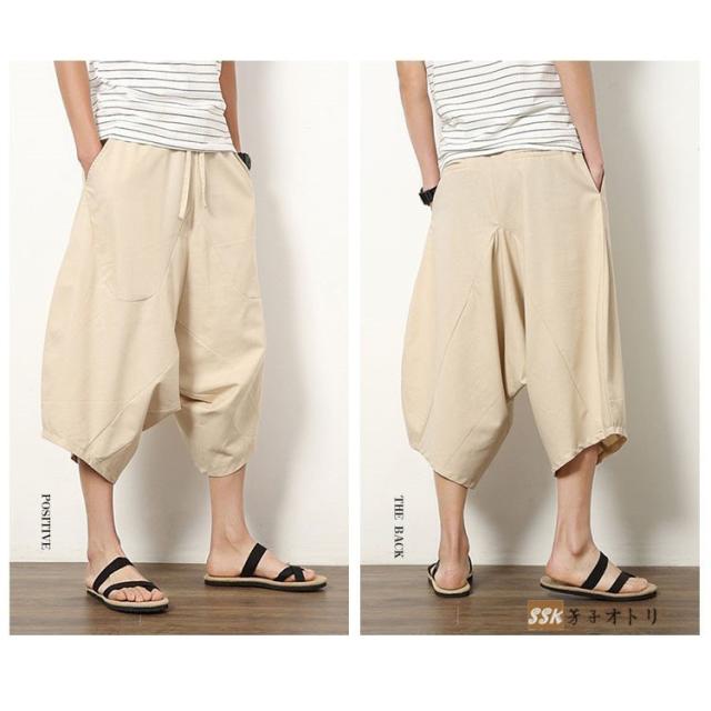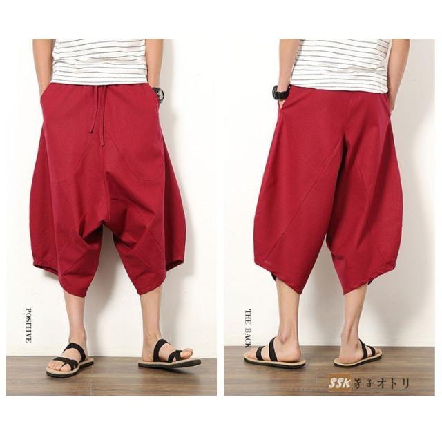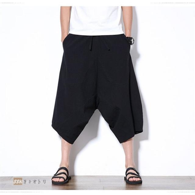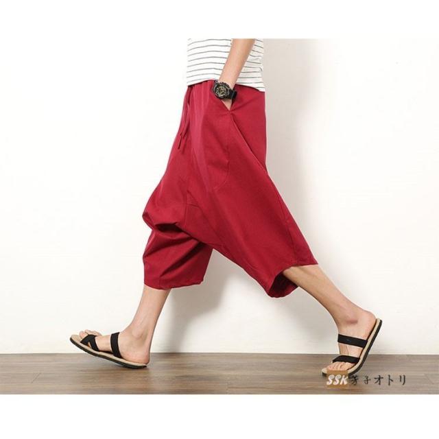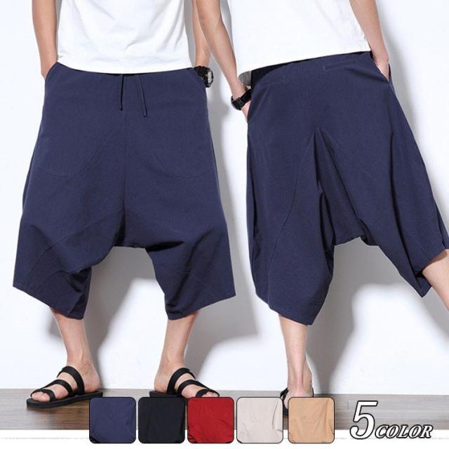 ワイドパンツ サルエルパンツ メンズ クロップドパンツ ガウチョパンツ バギーパンツ 七分丈 ゆったり 無地 涼しい