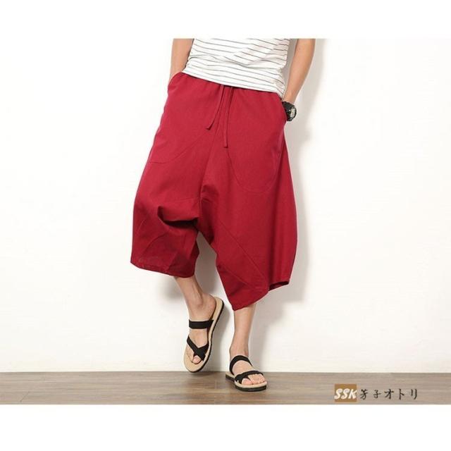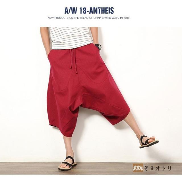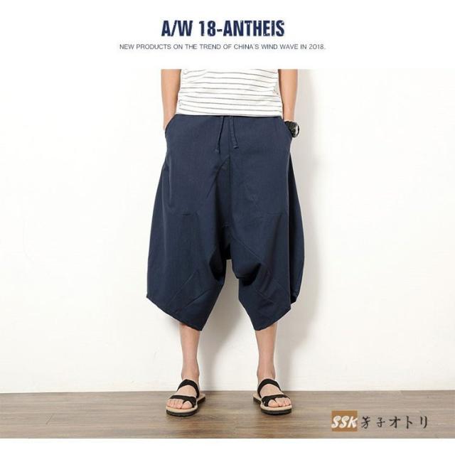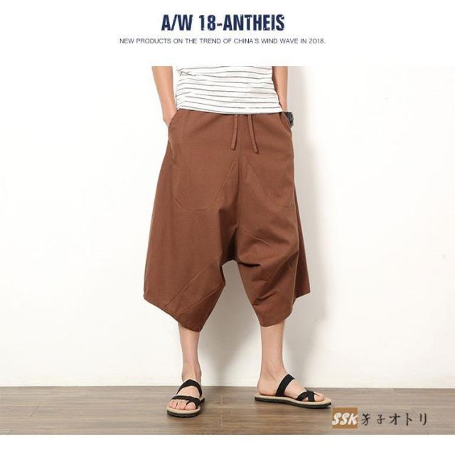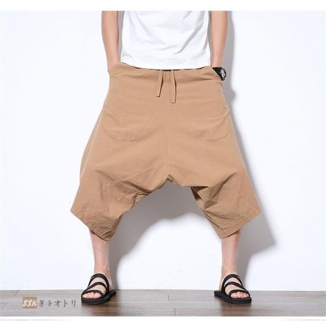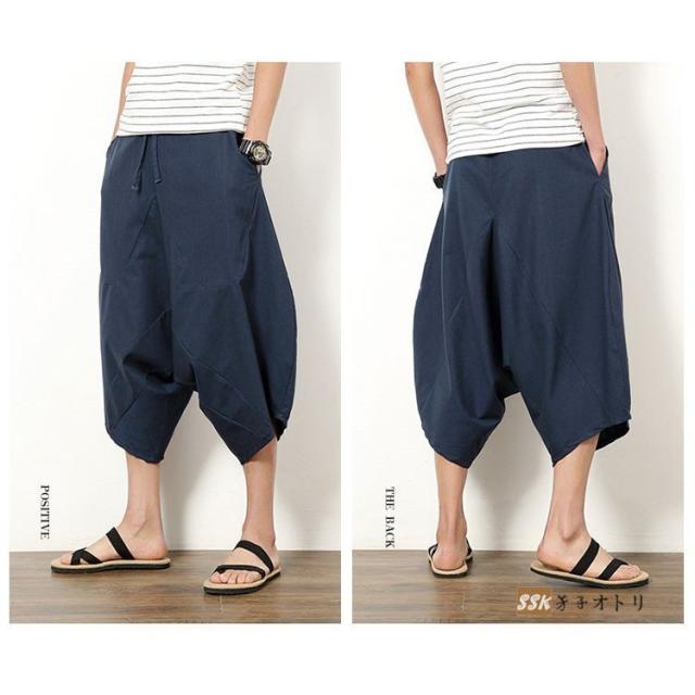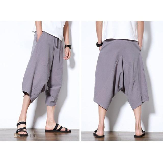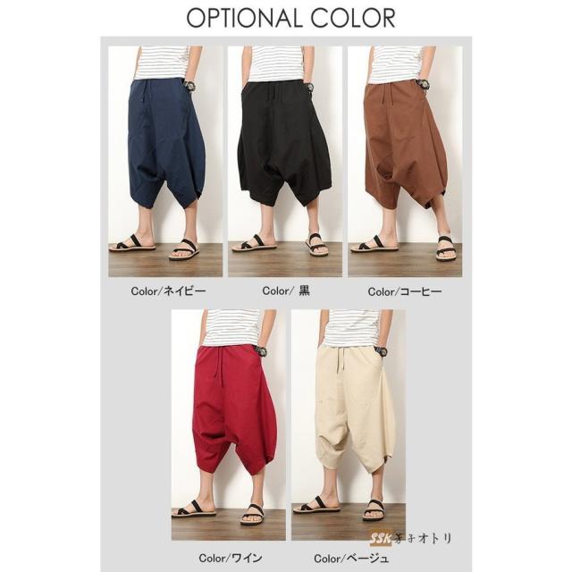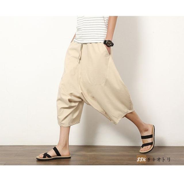 ワイドパンツ サルエルパンツ メンズ クロップドパンツ ガウチョパンツ バギーパンツ 七分丈 ゆったり 無地 涼しい