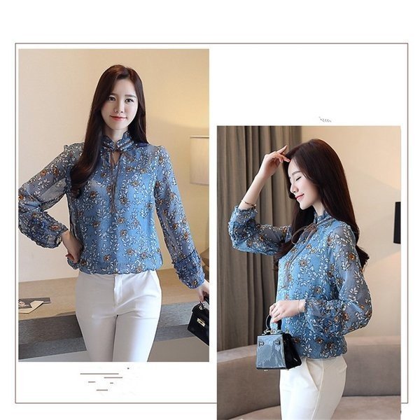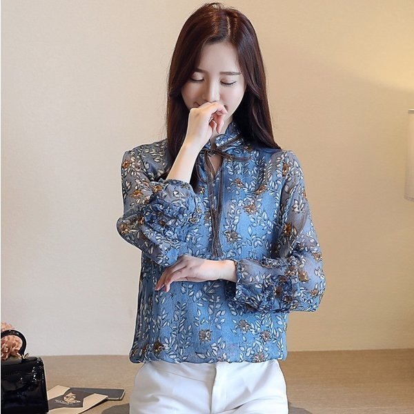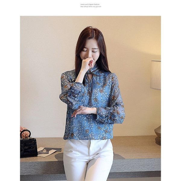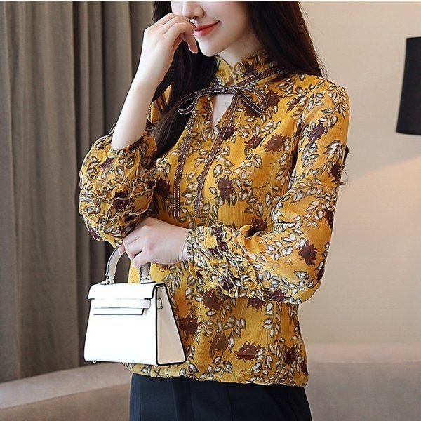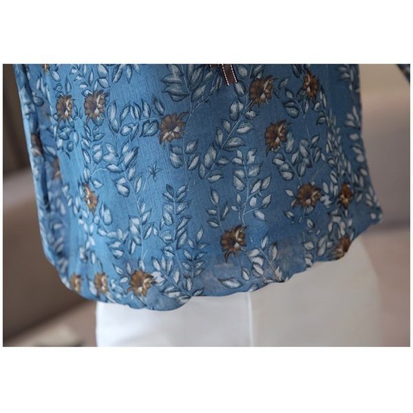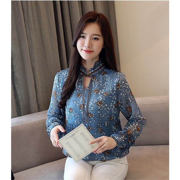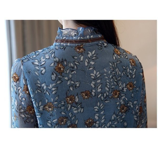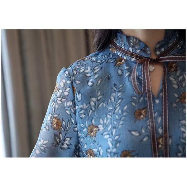 ブラウス シャツ レディース 花柄 レトロ風 ヴィンテージ風 長袖 バルーンスリーブ シフォン トップス 大きいサイズ 体型カ