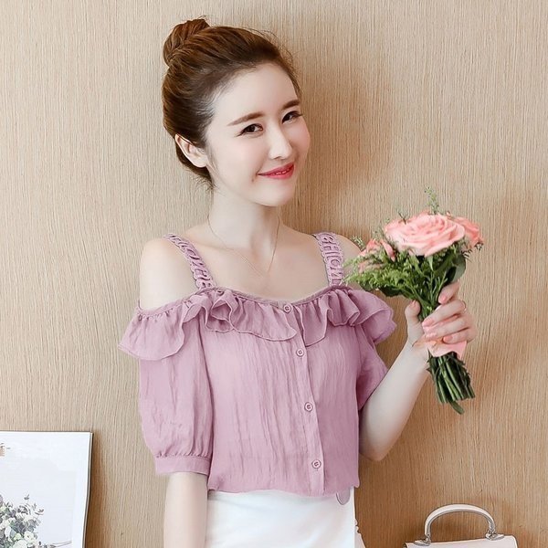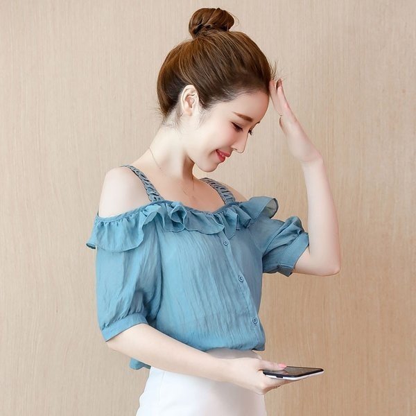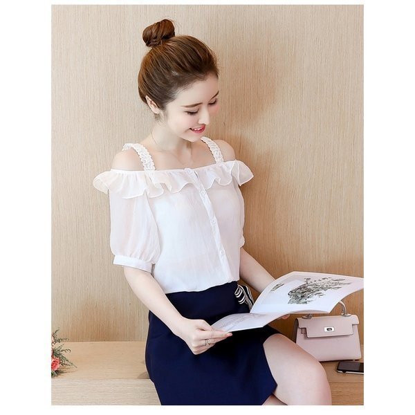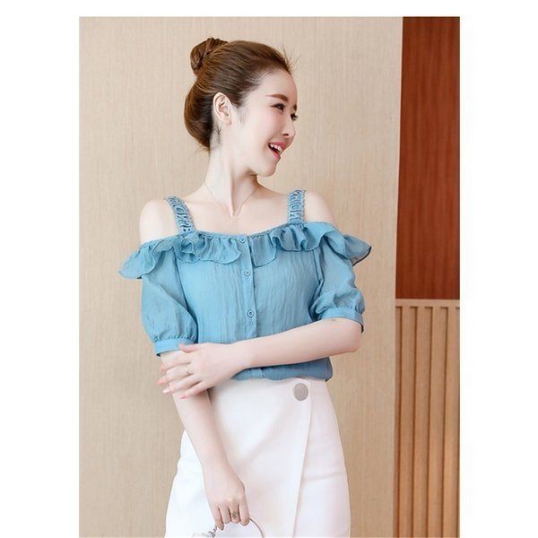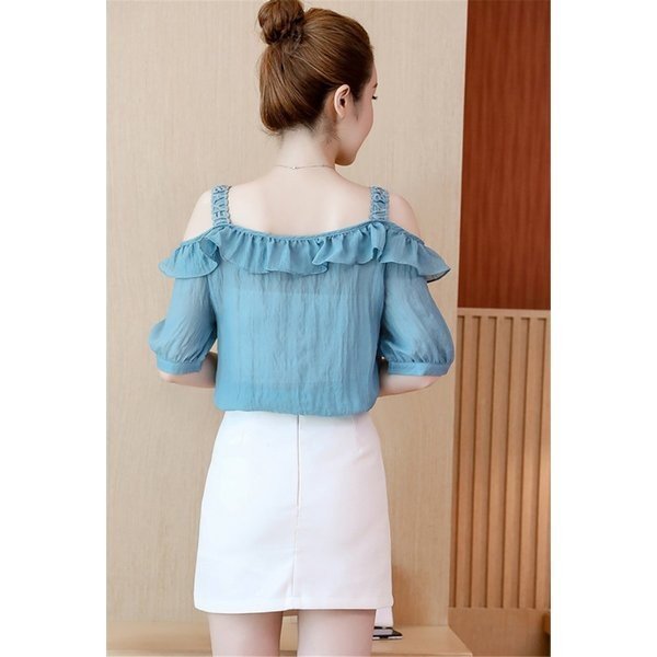シフォン ブラウス 半袖 オフショルダー 無地 レディース 肩出し 半袖シャツ 女性用 薄手 トップス シャツ キャミソール ボ