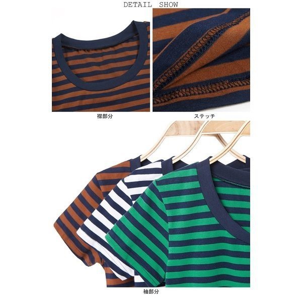 レディース 半袖Tシャツ ボーダー柄 ラウンドネック 女性用 カットソー トップス 夏物 マリンセーラー Tシャツ 薄手 スクー