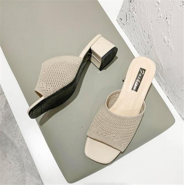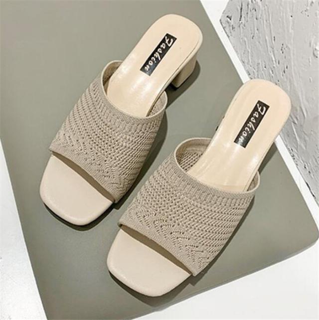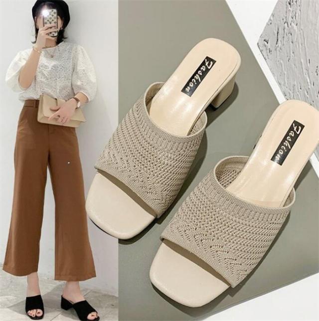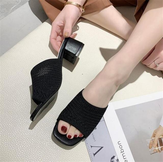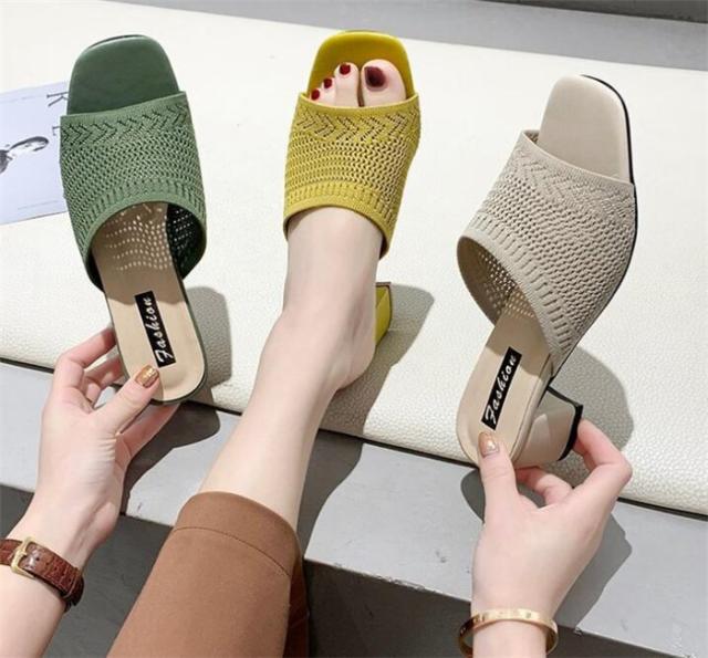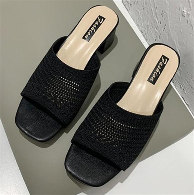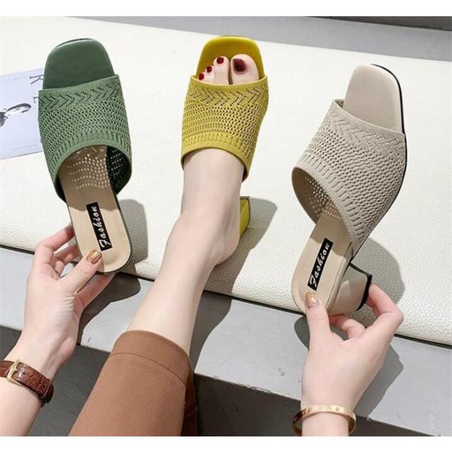 チャンキーヒールサンダル 美脚サンダル ニットサンダル ミュール レディース ミュール 痛くない 脱げない 美脚 疲れにくい オープントゥ ハイヒール