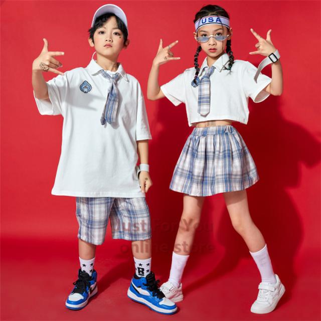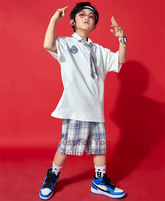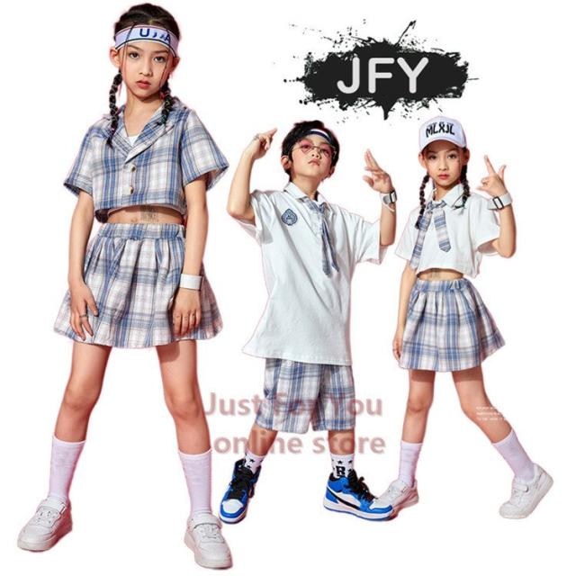 キッズ ダンス衣装 ヒップホップダンス衣装 男の子 女の子 チェック柄 HIPHOP へそ出し 女の子 スカート ジャズ ダンスウエア ジュニア