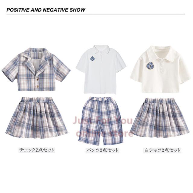 | 色 | チェックパンツ1点のみ チェックスカート1点のみ 女の子白シャツ1点のみ 男の子白シャツ1点のみ パンツ2点セット 白シャツ2点セット |