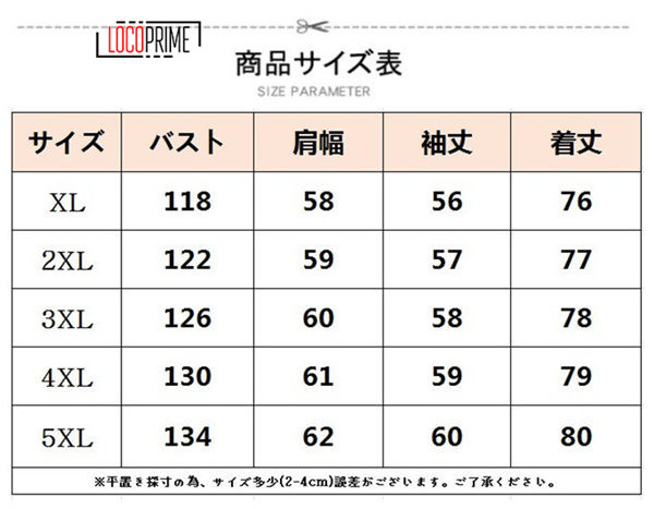 | サイズ | XL 2XL 3XL 4XL 5XL |