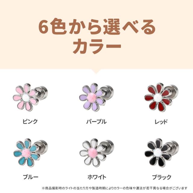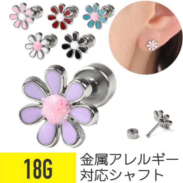 フラワー カラフル スタッドピアス 18G サージカルステンレス イヤーロブ ヘリックス トラガス 軟骨ピアス ボディピアス フラワー