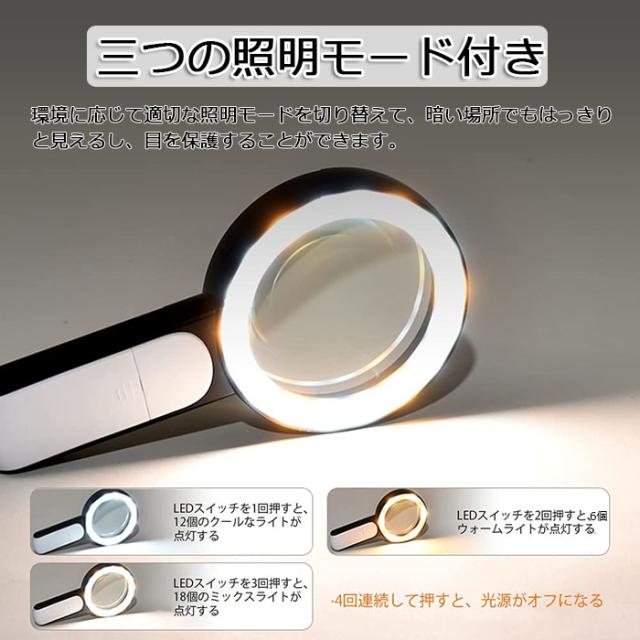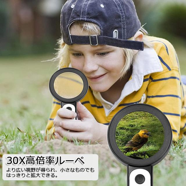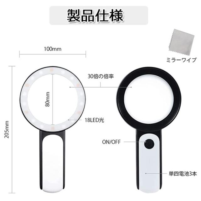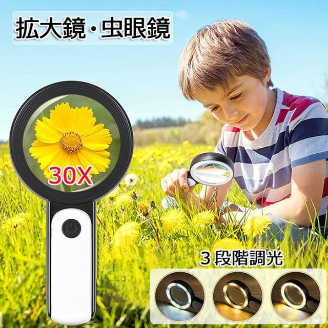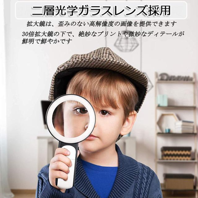 「クーポン配布中」拡大鏡 虫眼鏡 30倍高倍率 18個LEDライト付き ルーペ 手持ちルーペ 高倍率 見やすい 拡大レンズ 3段階調光 子ども用 高齢者用 敬老の日 ギフト