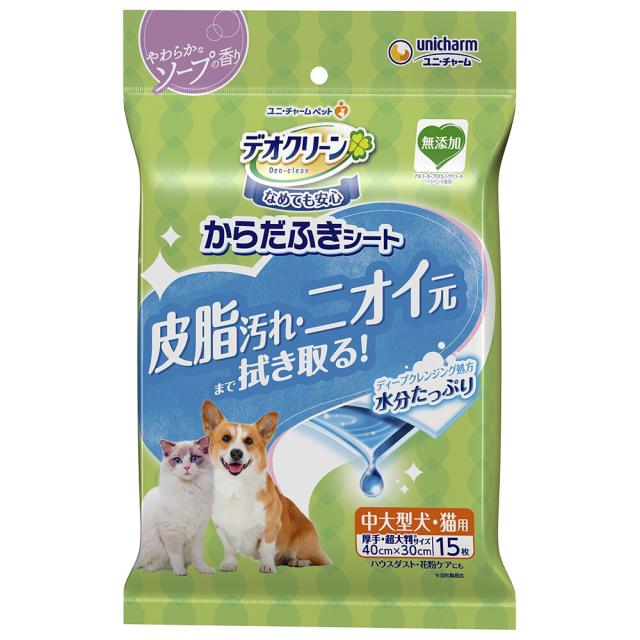 ユニ・チャーム デオクリーン からだふきシート 中大型犬用 やわらかなソープの香り 15枚