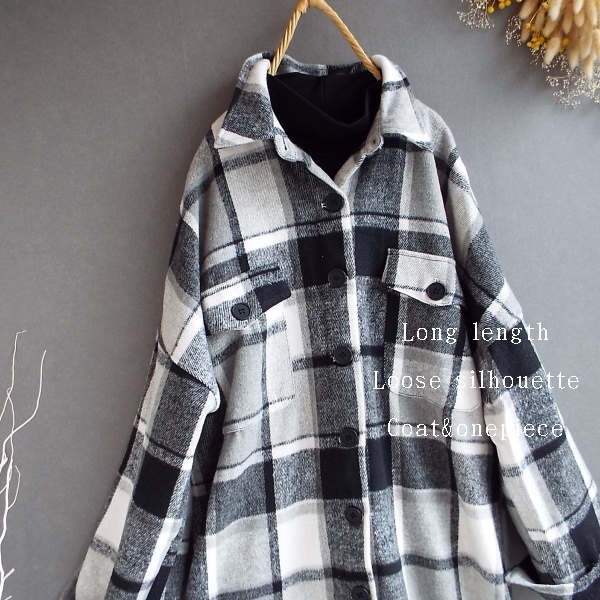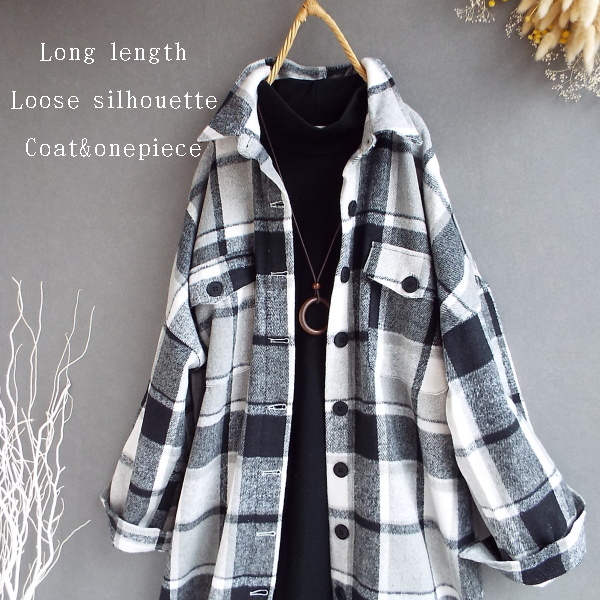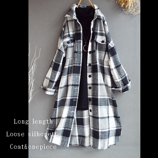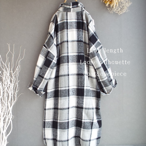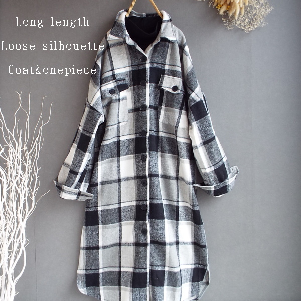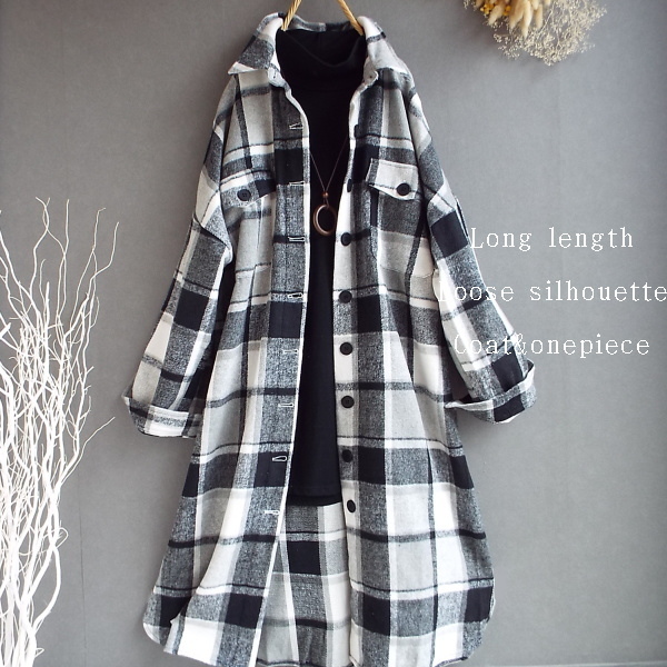 ワンピース ゆったり レディース アウター シャツ 羽織物 前開 チェック柄 起毛 大人 きれいめ 秋 冬 40代 50代 体型カバー s3168