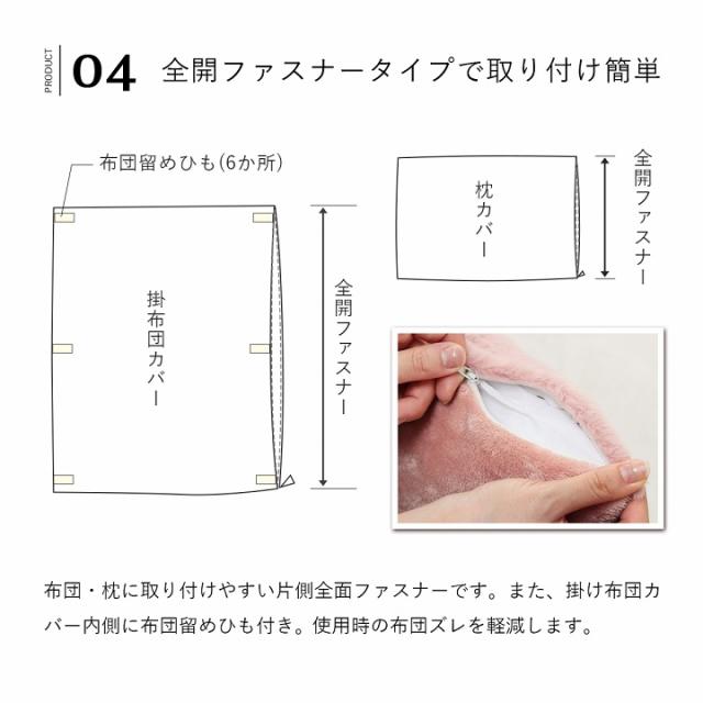 ■ 大人かわいいシンプルデザインのラピアスシリーズです。ふわふわな極上のタッチ感で暮らしに幸せをお届けします。 ■ 表地にはフィラメント糸でふわふわなフェイクファーを使用しています。毛羽立ちが少なく、耐久性にも優れています。 ■ フェイクファーは毛が抜けにくいマイヤー織りで、毛足の長さは長すぎず使用感がほどよい約10mmを採用しました。 ■ ボックスシーツは裏面がゴムタイプの為、着脱が簡単で洗濯の時に非常に便利です。厚み25cmまでのマットレスに対応しております。 ■ 枕・掛け布団カバーの裏地には柔らかく、肌触りの良いフランネル生地を使用しています。両面使用可能なリバーシブルタイプです。 ■ 枕・掛け布団カバーは着脱簡単な全開ファスナー付きで、洗濯の時に非常に便利です。 ■ 掛け布団カバーには掛け布団を固定するひもが6か所ついています。 ■ 掛け布団カバーは通常サイズより10cm長いロングサイズです。 ■ 洗濯機での丸洗いが可能なので清潔にご使用いただけます。 ※ 本商品は、同シリーズでも色味が異なる場合がございます。あらかじめご了承ください。 ※ フェイクファーは、毛足の向きによって色の見え方が変わるのが特長です。 ※ 生産時期により同色でも若干色味が異なる場合がございます。 ※ 使い始めは遊び毛が出る可能性がございますので、ご使用前に掃除機でやさしく吸い取ってください。 ※ 滑らかな肌触りが特徴の製品です。ご使用中の転倒にご注意ください。 ※ 掲載写真は表記サイズと異なる場合がございます。 ※ 画面上のカラーはご使用ブラウザやモニターの設定により、実物とは若干異なる場合がございます。あらかじめご了承の上、ご注文をお願いいたします。 | |