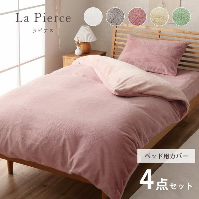 布団カバー ダブル あったか 「ラピアス」ベッドカバー4点セット あったか 掛け布団カバー フランネル ダブル 毛布にもなる2WAY仕様 掛布団カバー ラビットファー