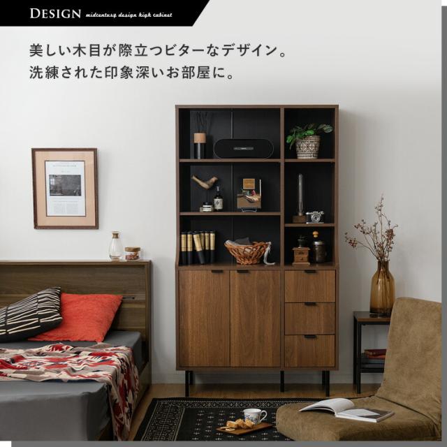ラック 棚 収納棚 おしゃれ キャビネット シェルフ リビング収納 寝室 デスク ダイニング キッチン キッチンラック 引き出し 収納家具 オープンラック オープン棚 扉収納 フリーラック マルチ ウッドラック モダン ハイタイプキャビネット NOMYR〔ノーマイア〕